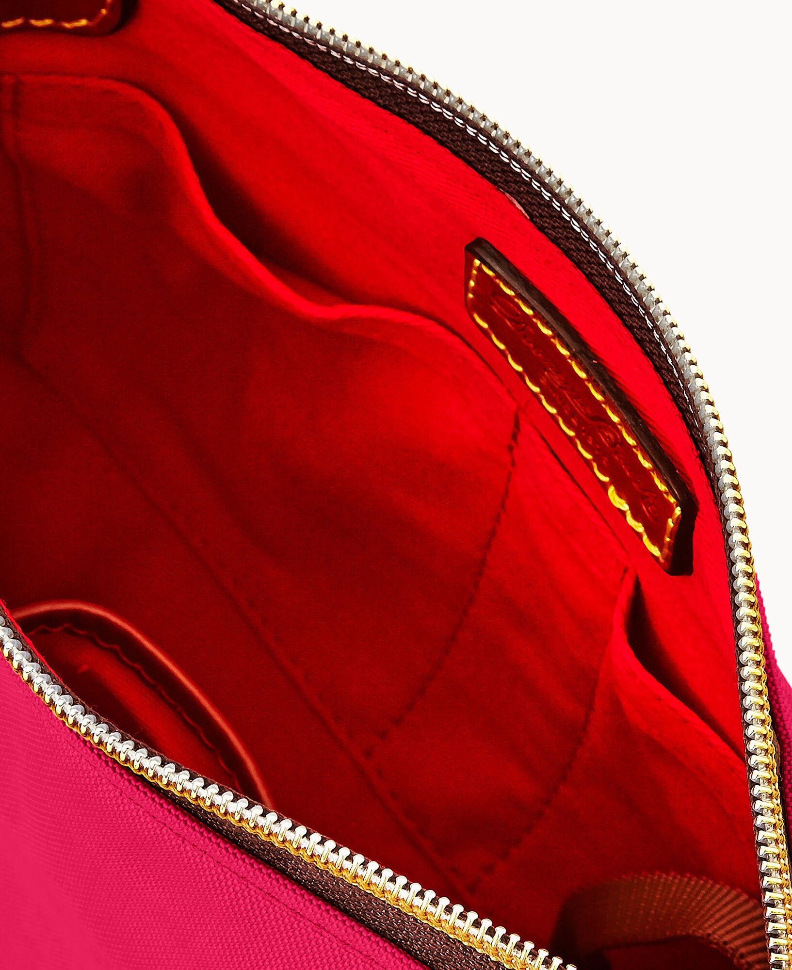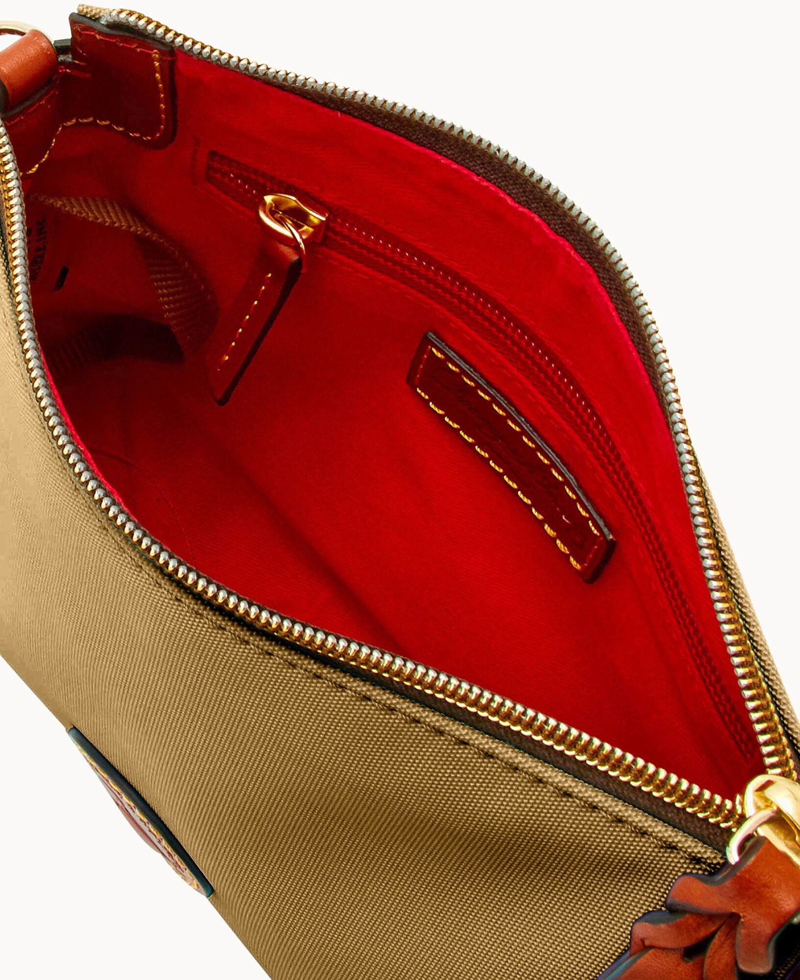 One inside zip pocket. Two inside pockets. Cell phone pocket. Adjustable shoulder strap. Strap drop length 25″. Lined. Zipper closure.