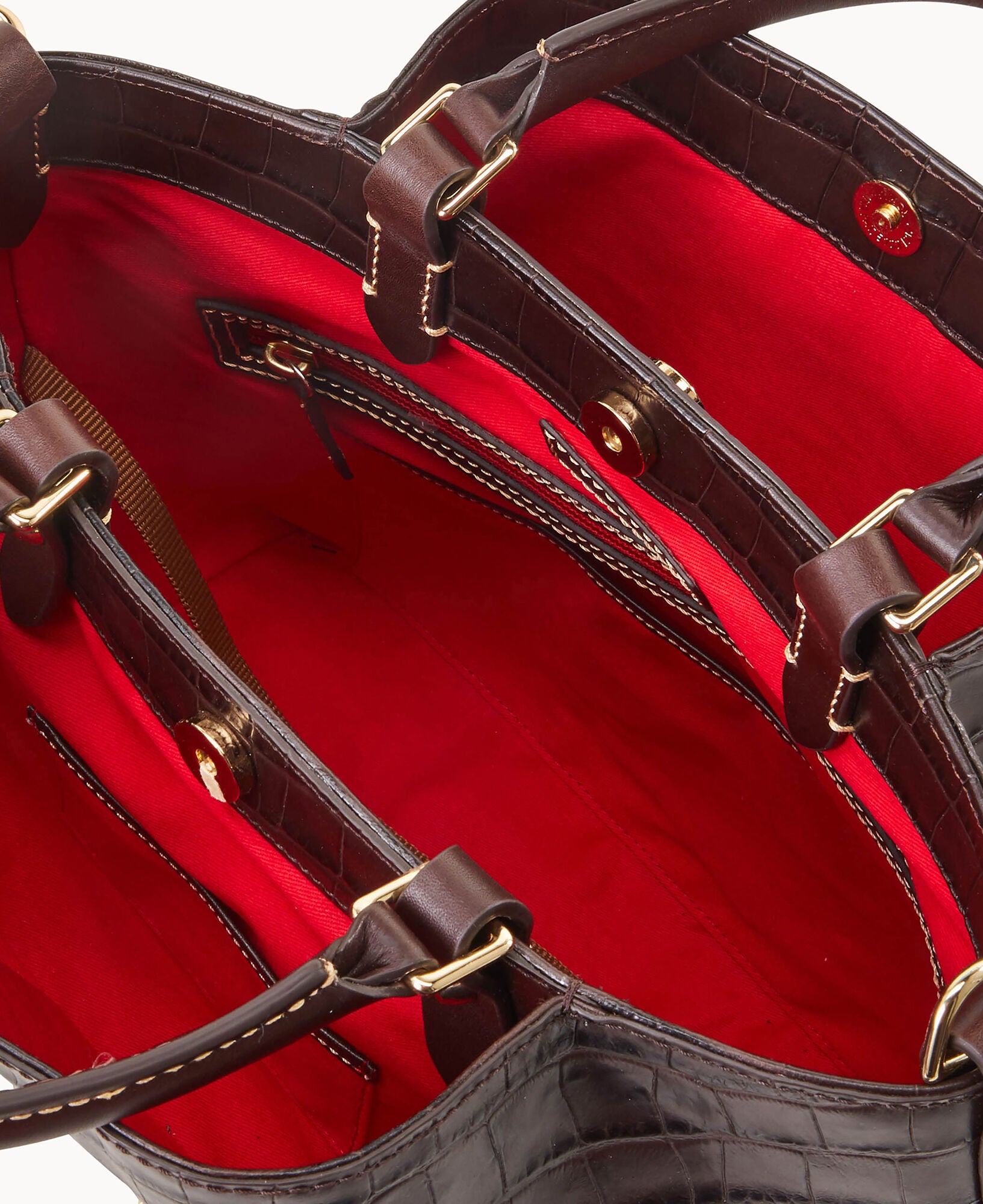 Front and back magnetic snap pockets. One inside zip pocket. Two inside pockets. One credit card slot. Cell phone pocket. Inside key hook. Handle drop length 5″. Adjustable, detachable shoulder strap. Strap drop length 26.5″. Lined. Feet. Magnetic snap closure.