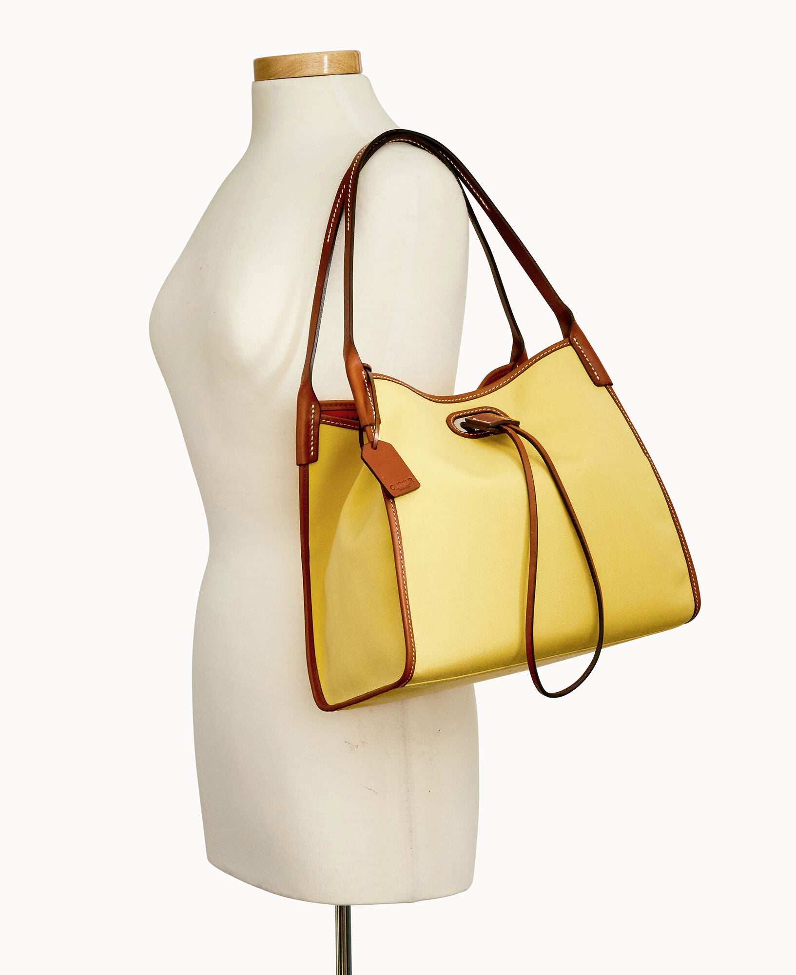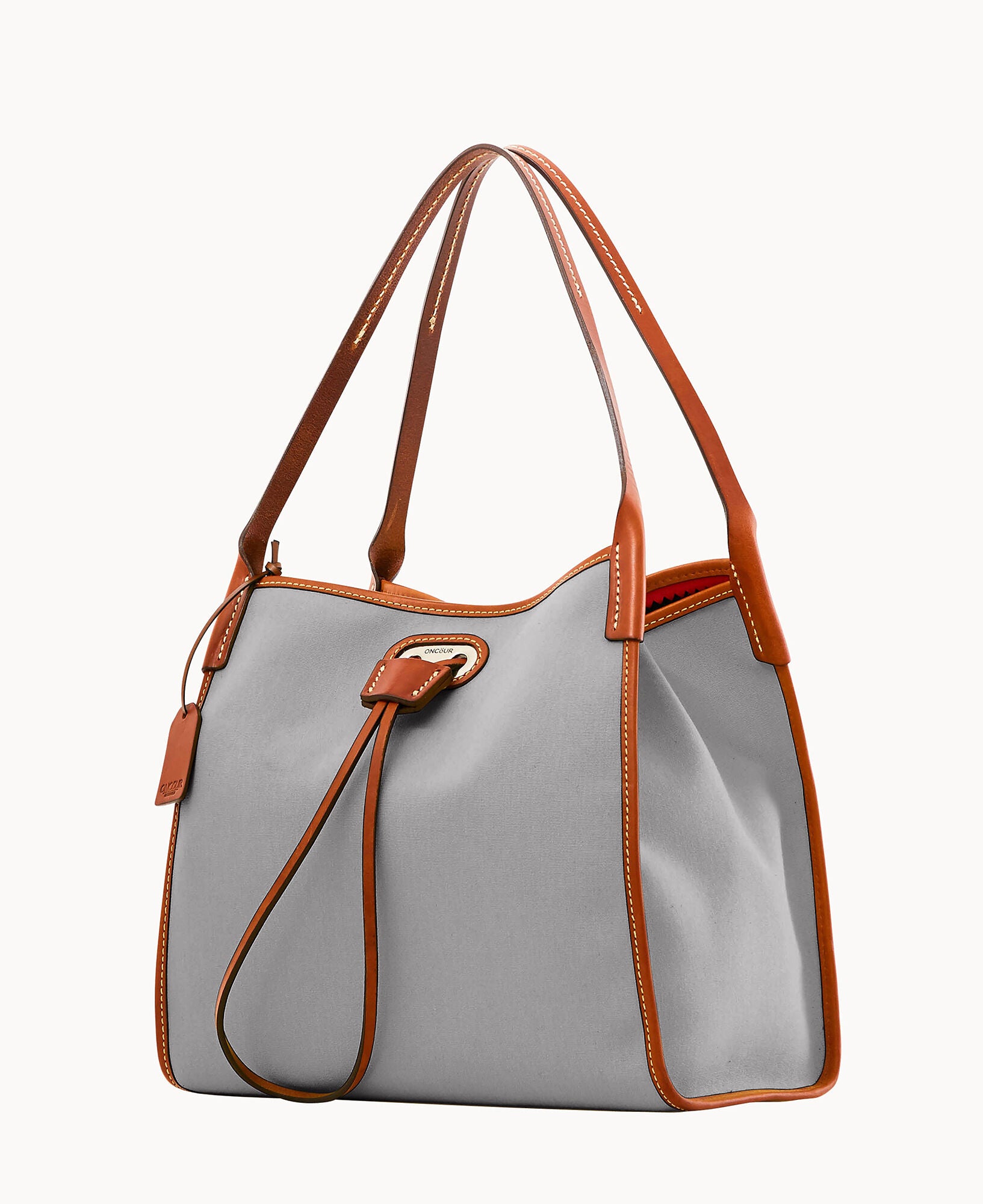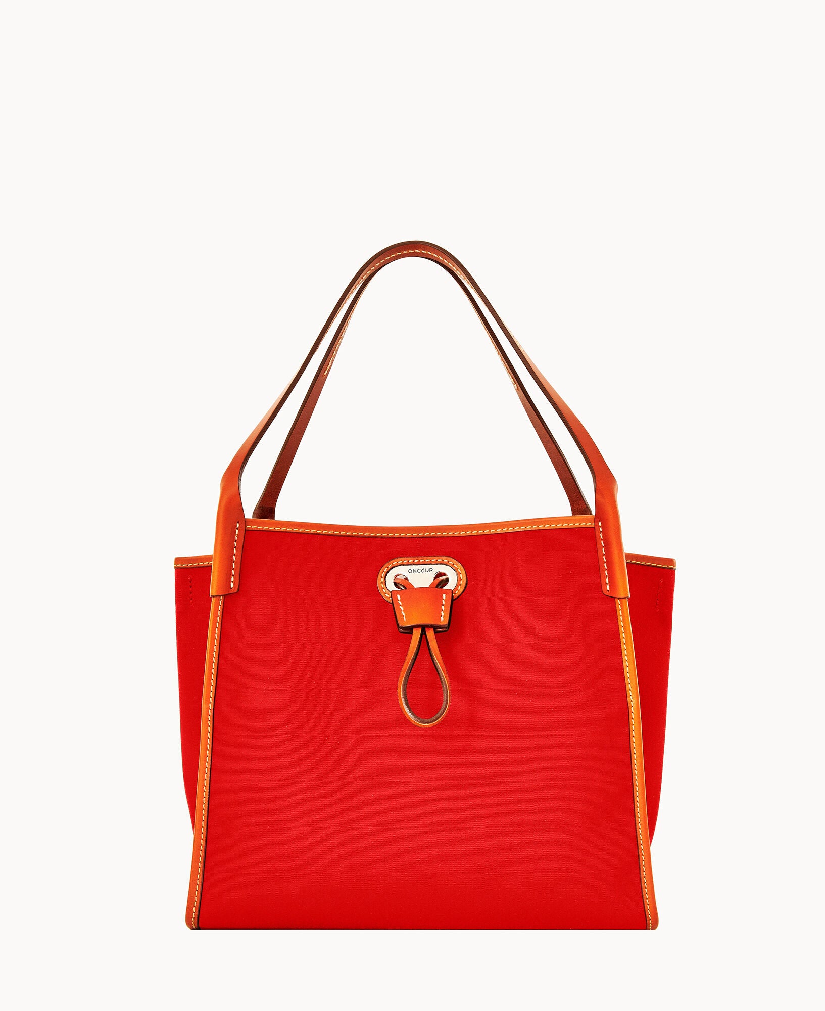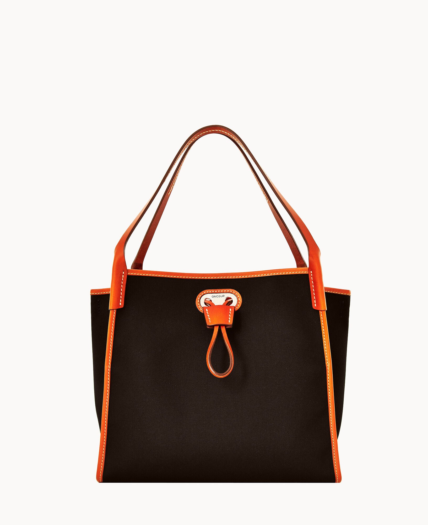 Inside key hook. Strap drop length 11″. Drawstring closure.