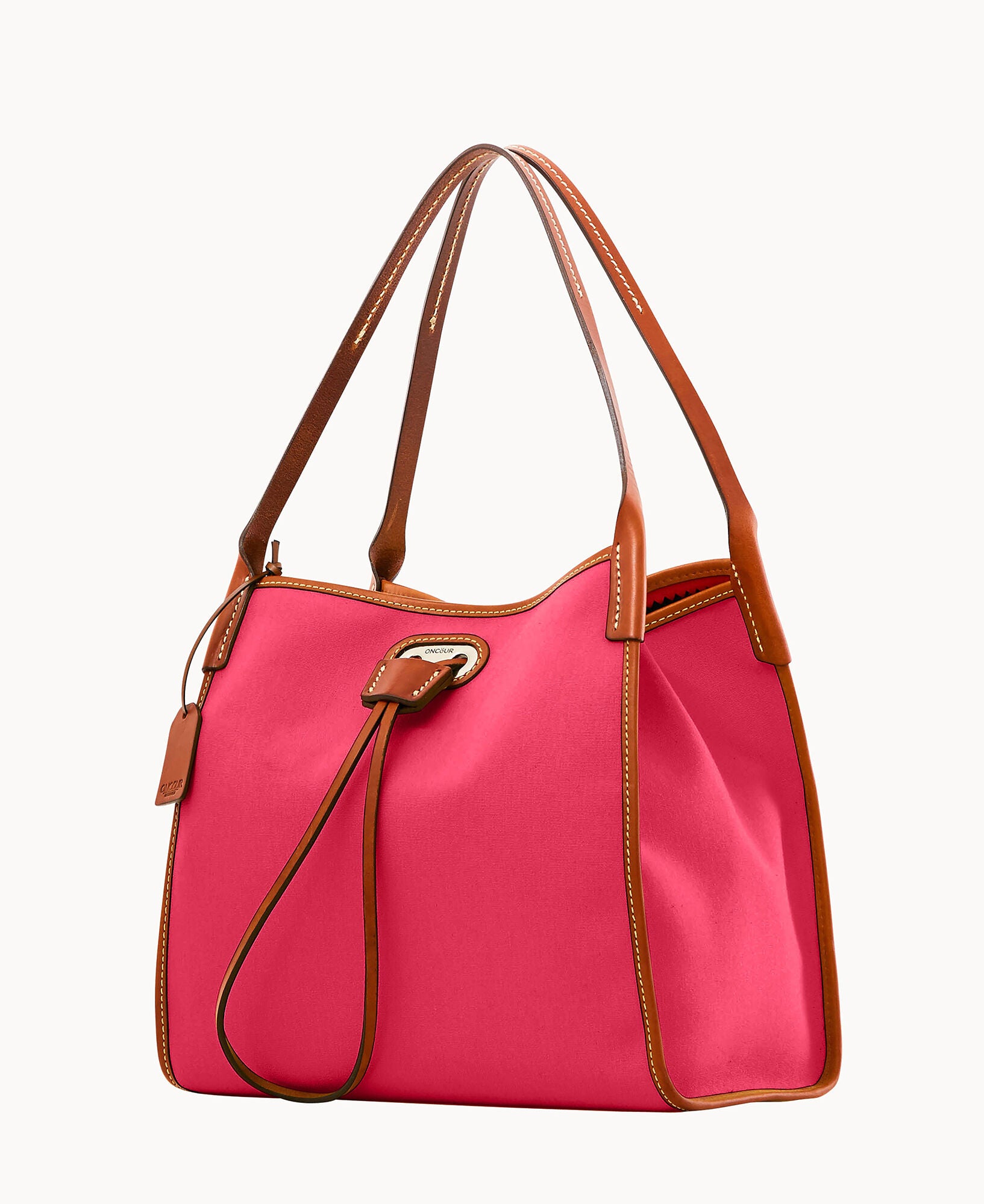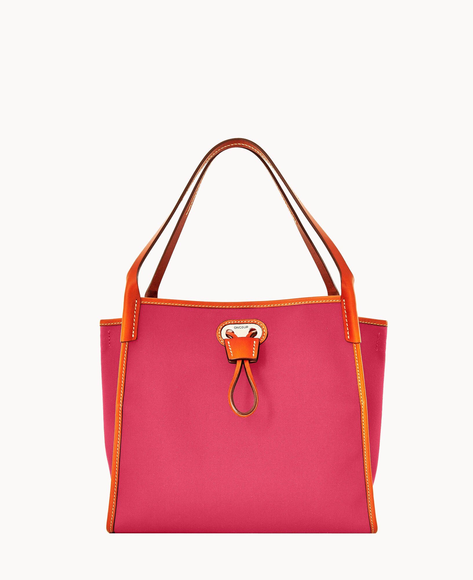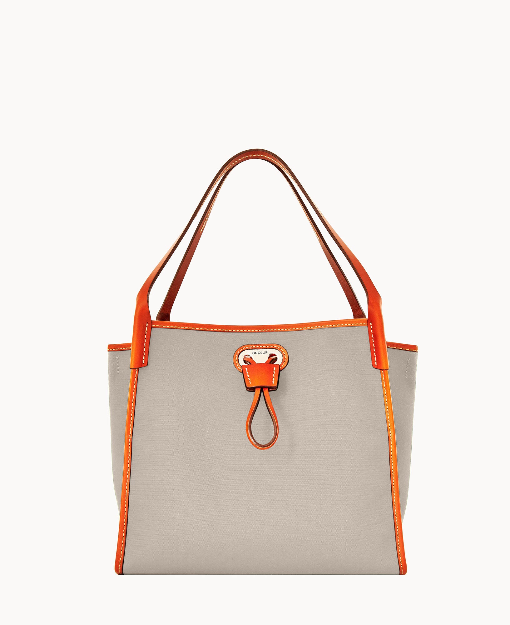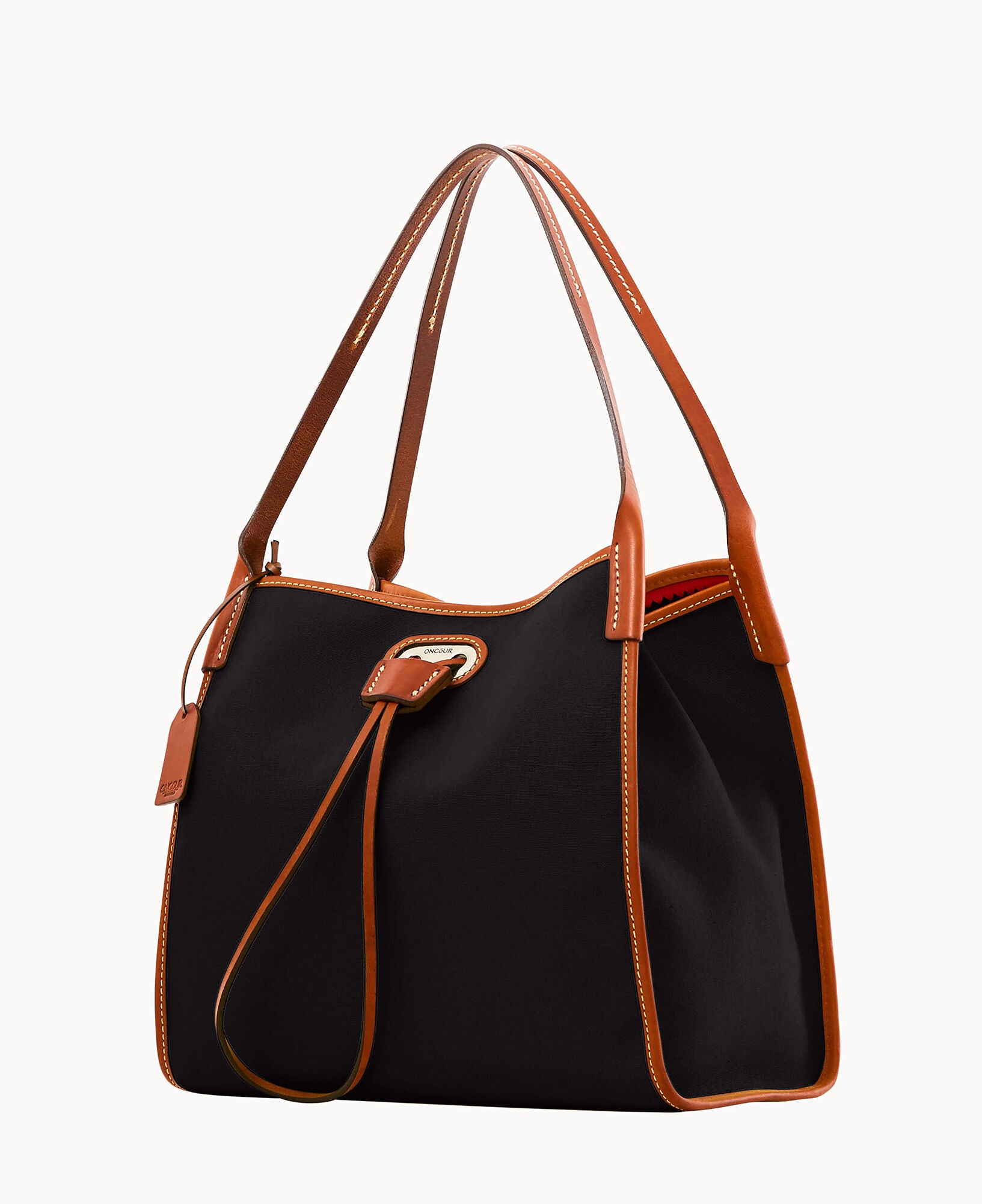 Inside key hook. Strap drop length 11″. Drawstring closure.