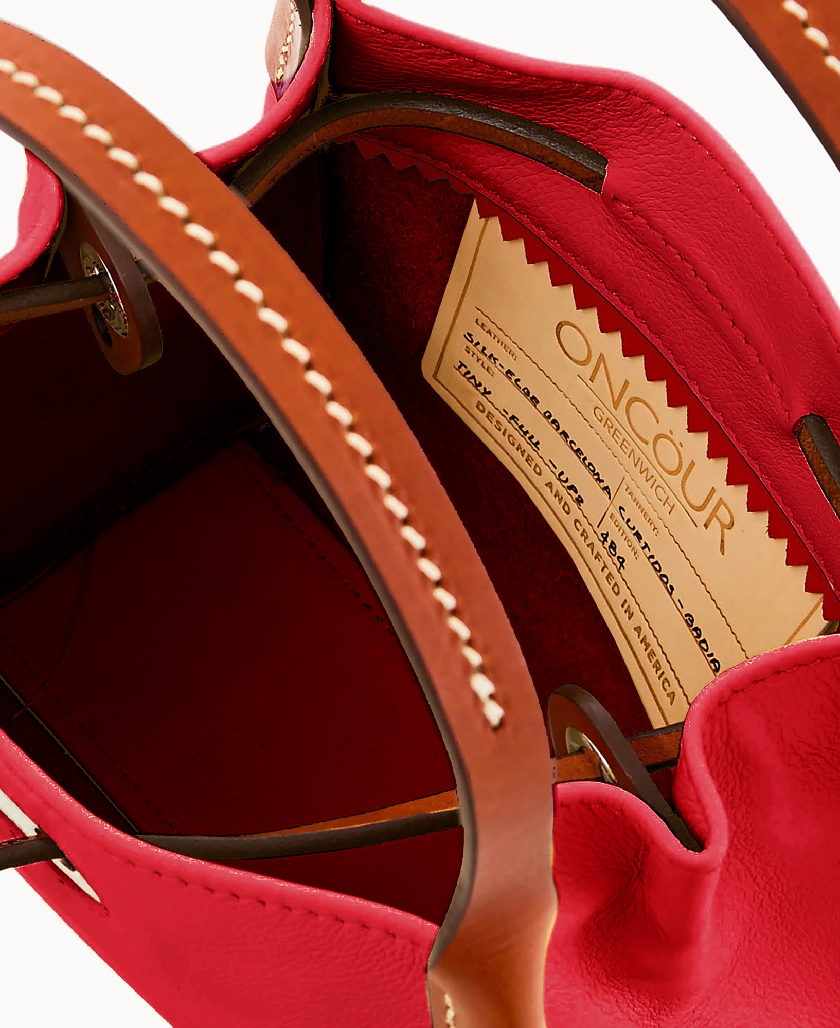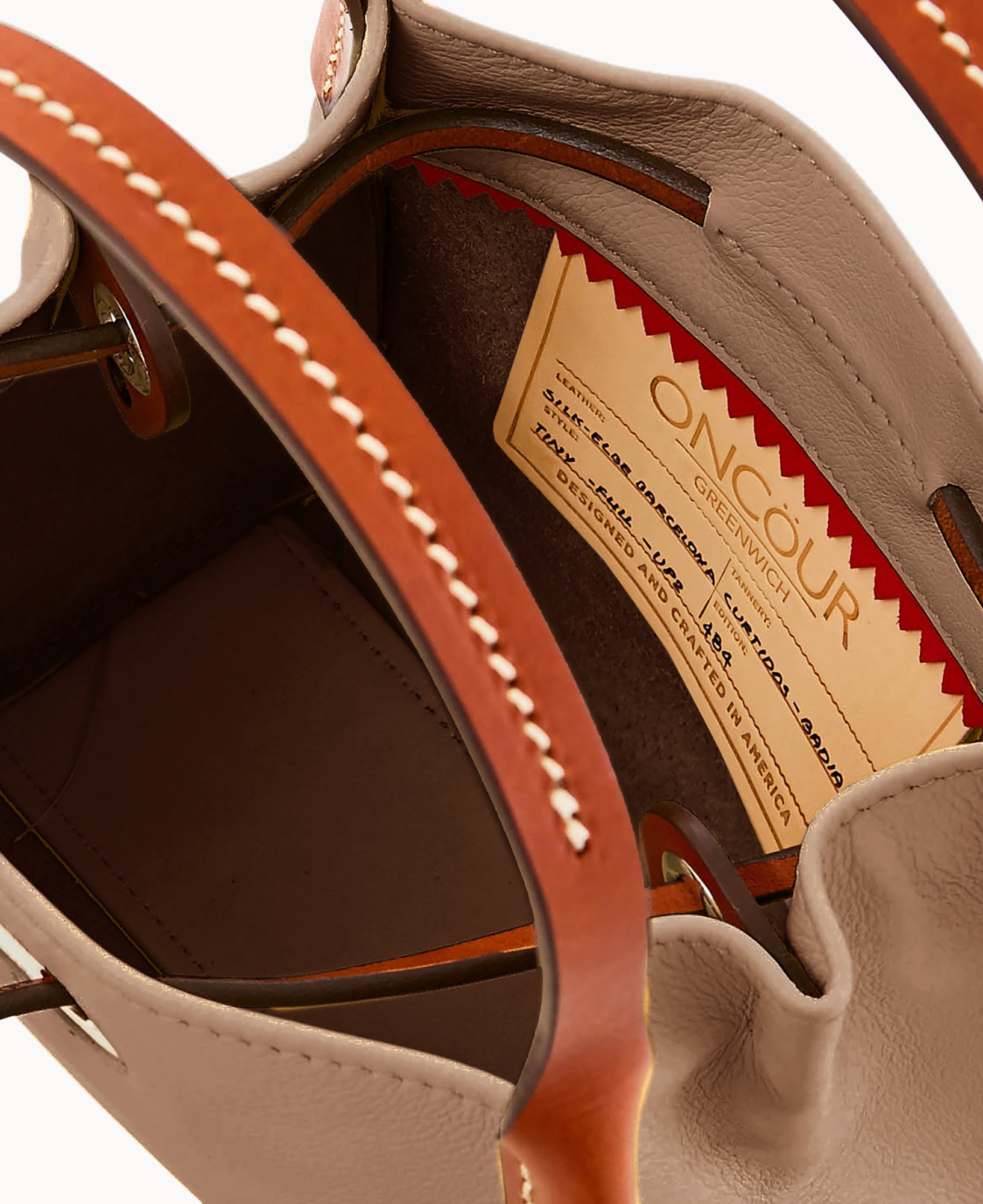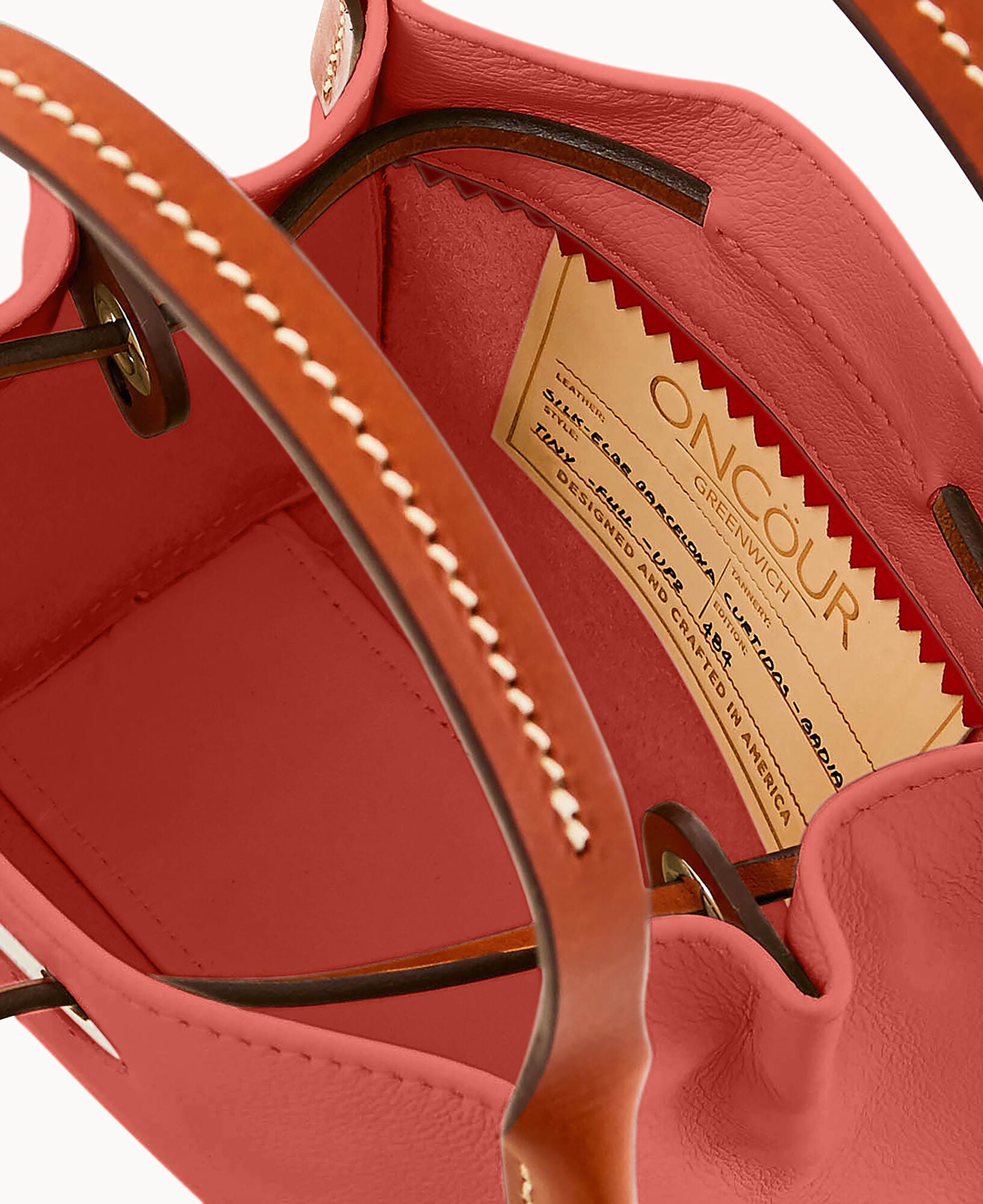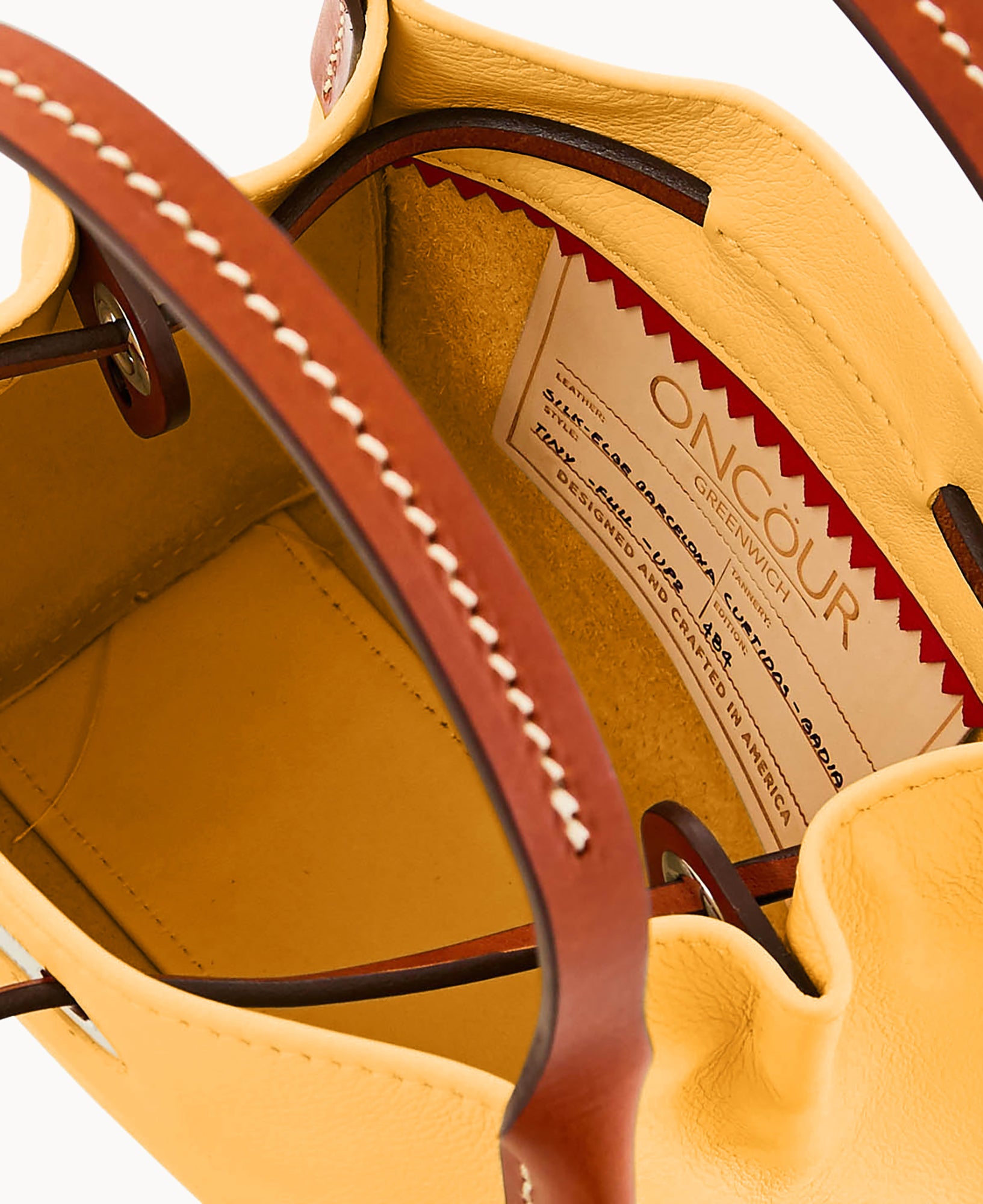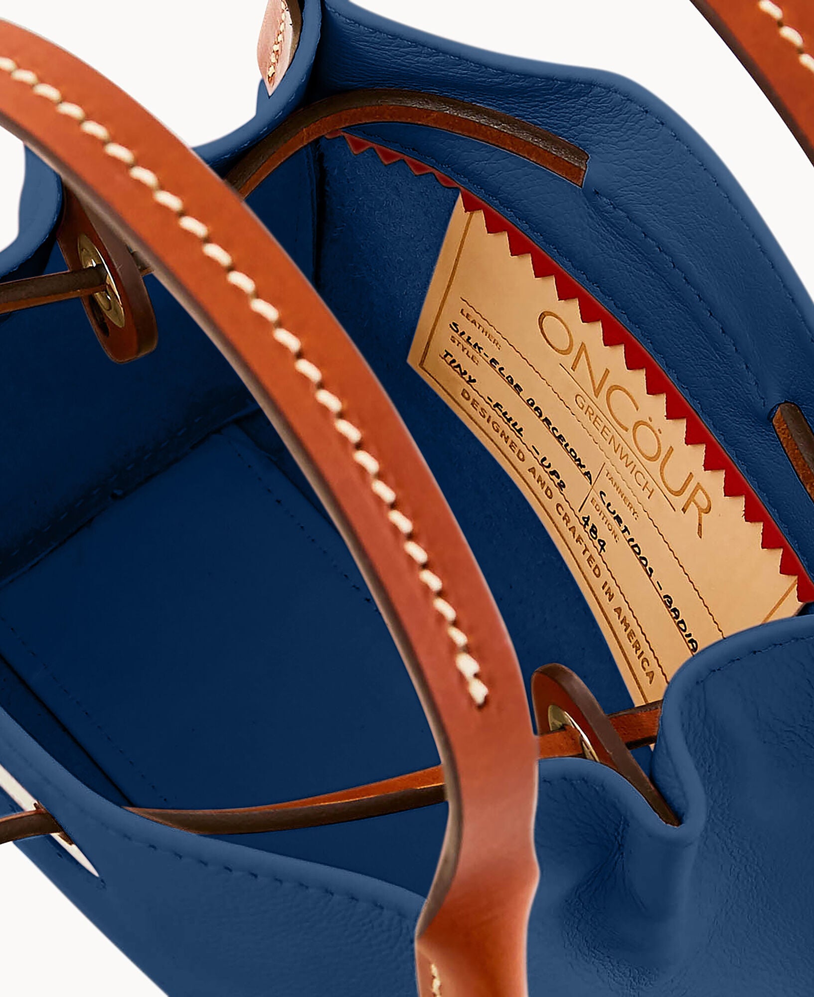 Inside key hook. Strap drop length 5″. Drawstring closure.
