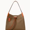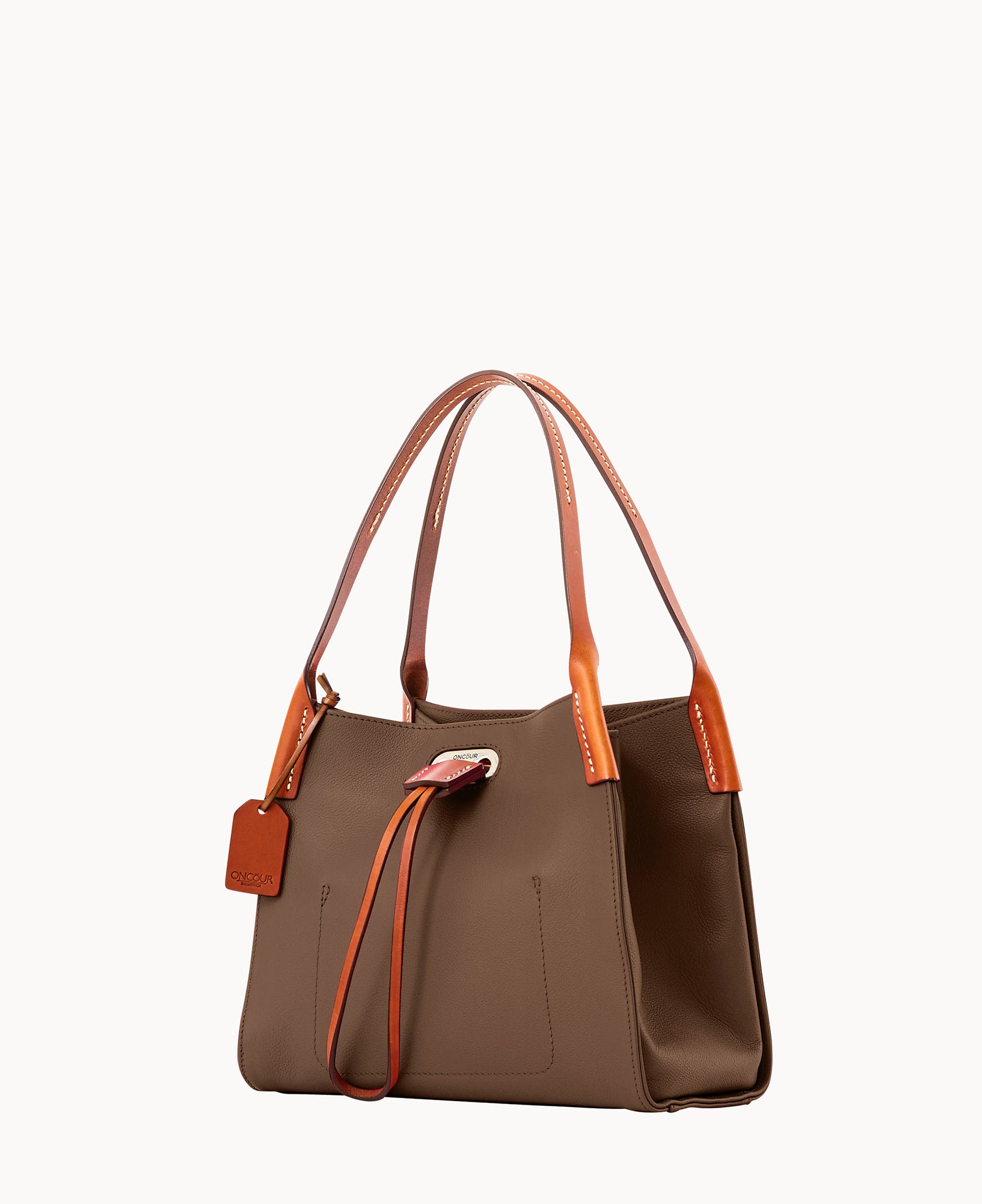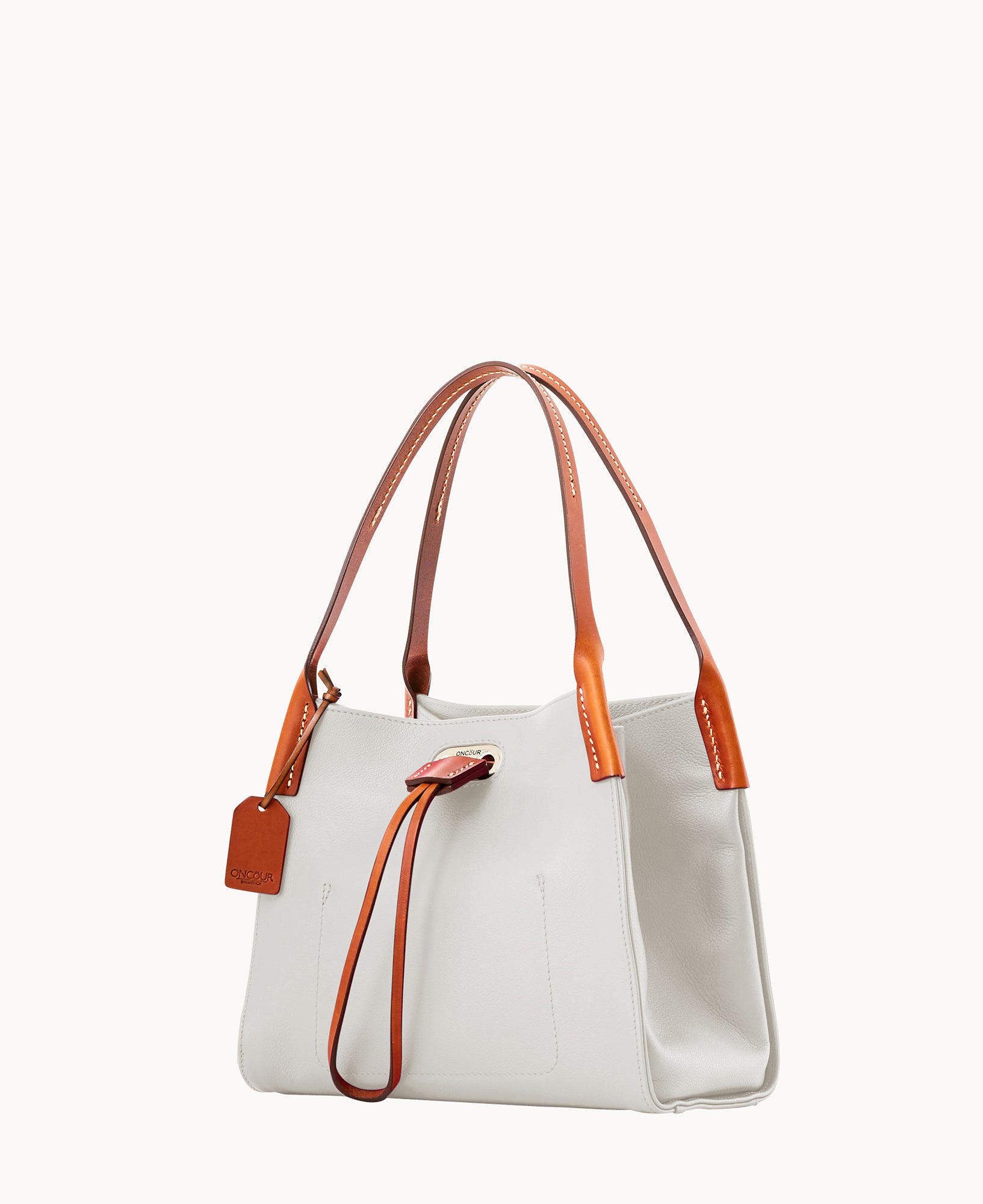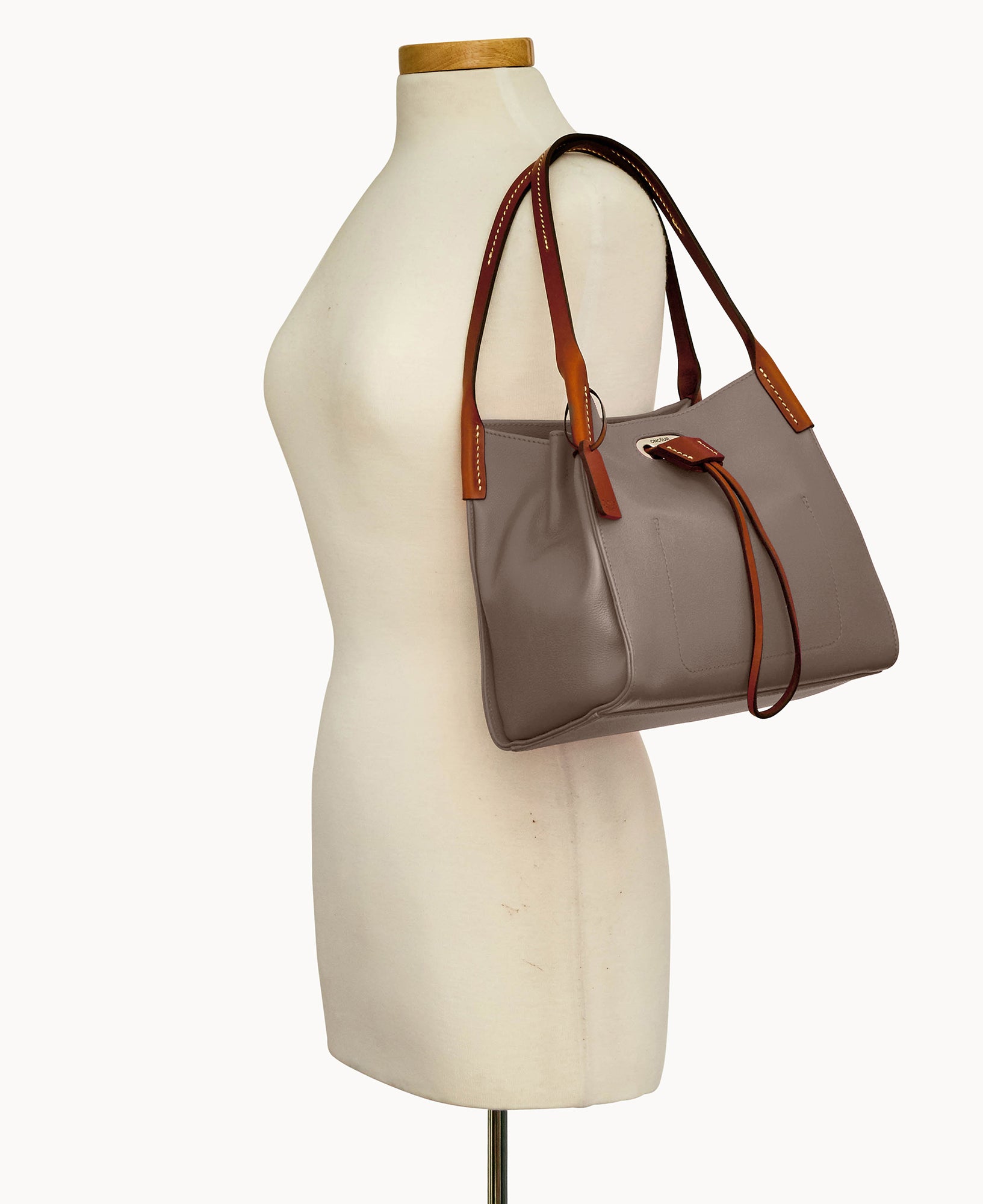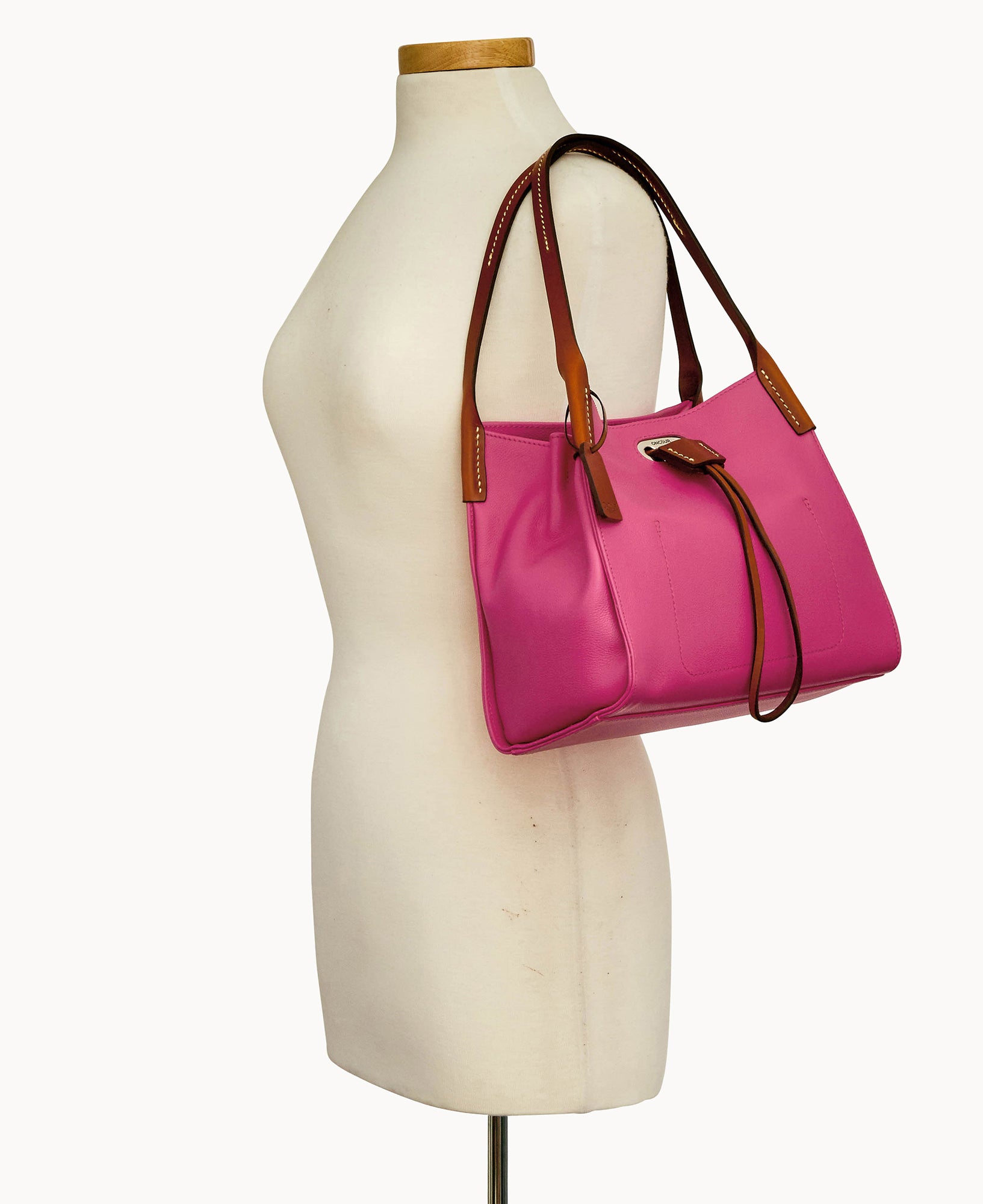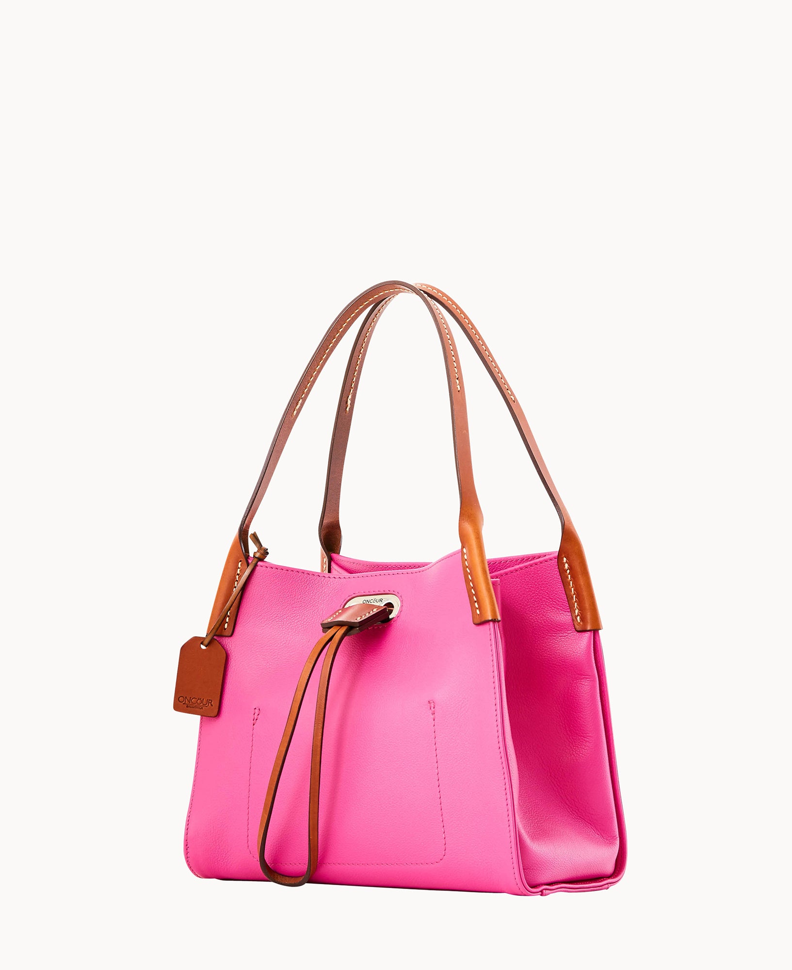Two inside pockets. Inside key hook. Strap drop length 5″. Drawstring closure.