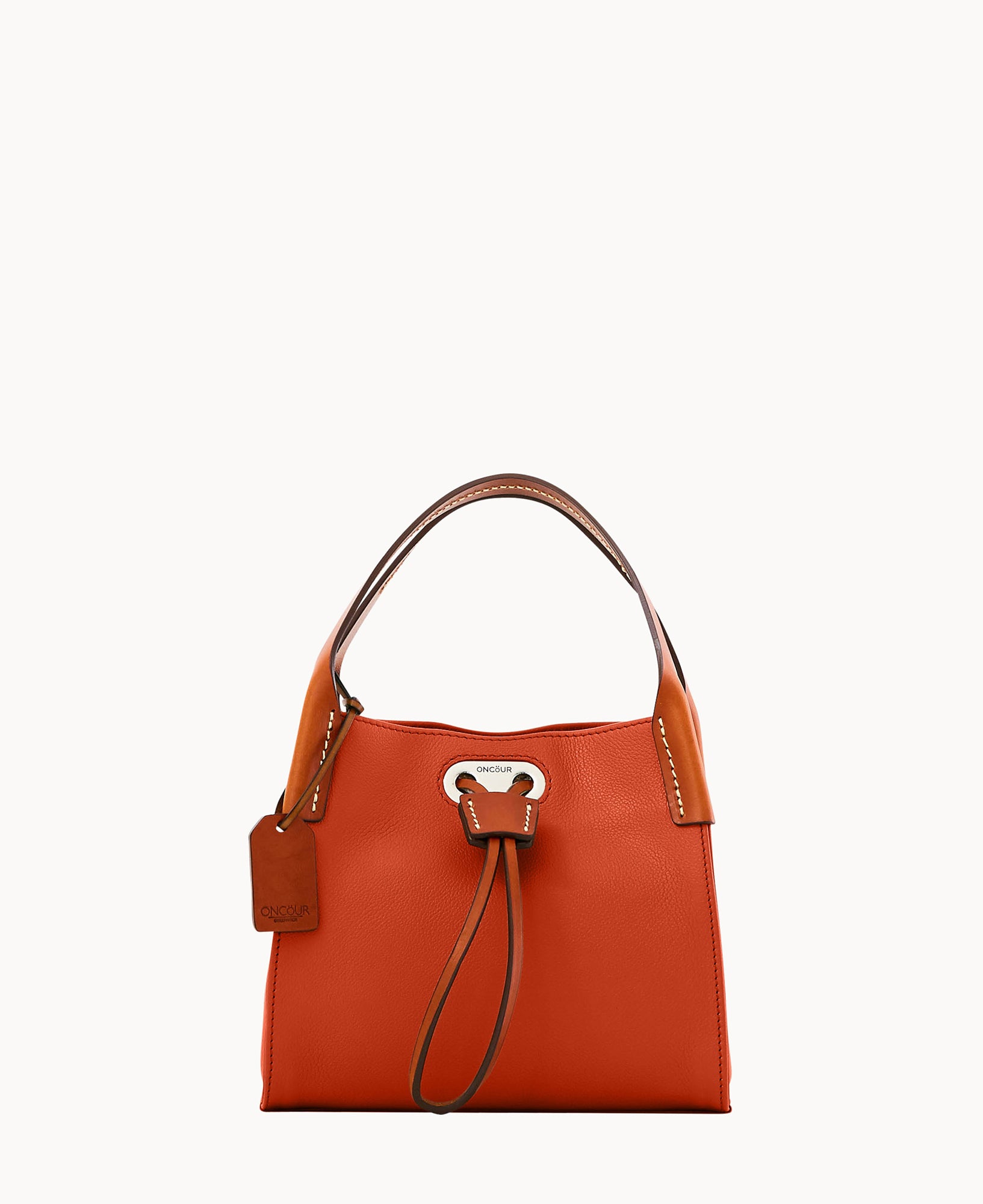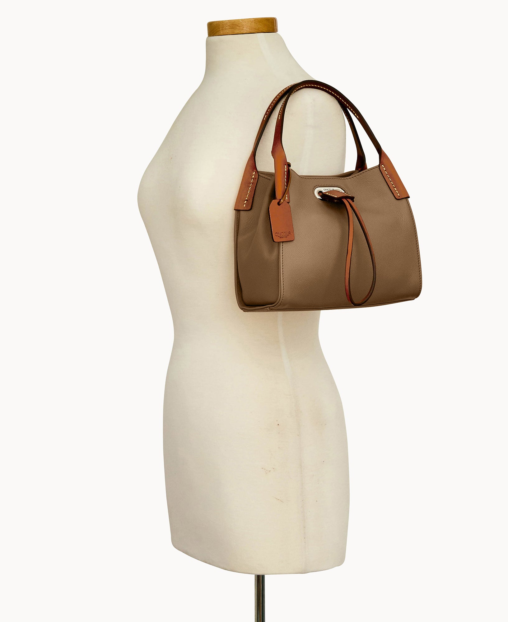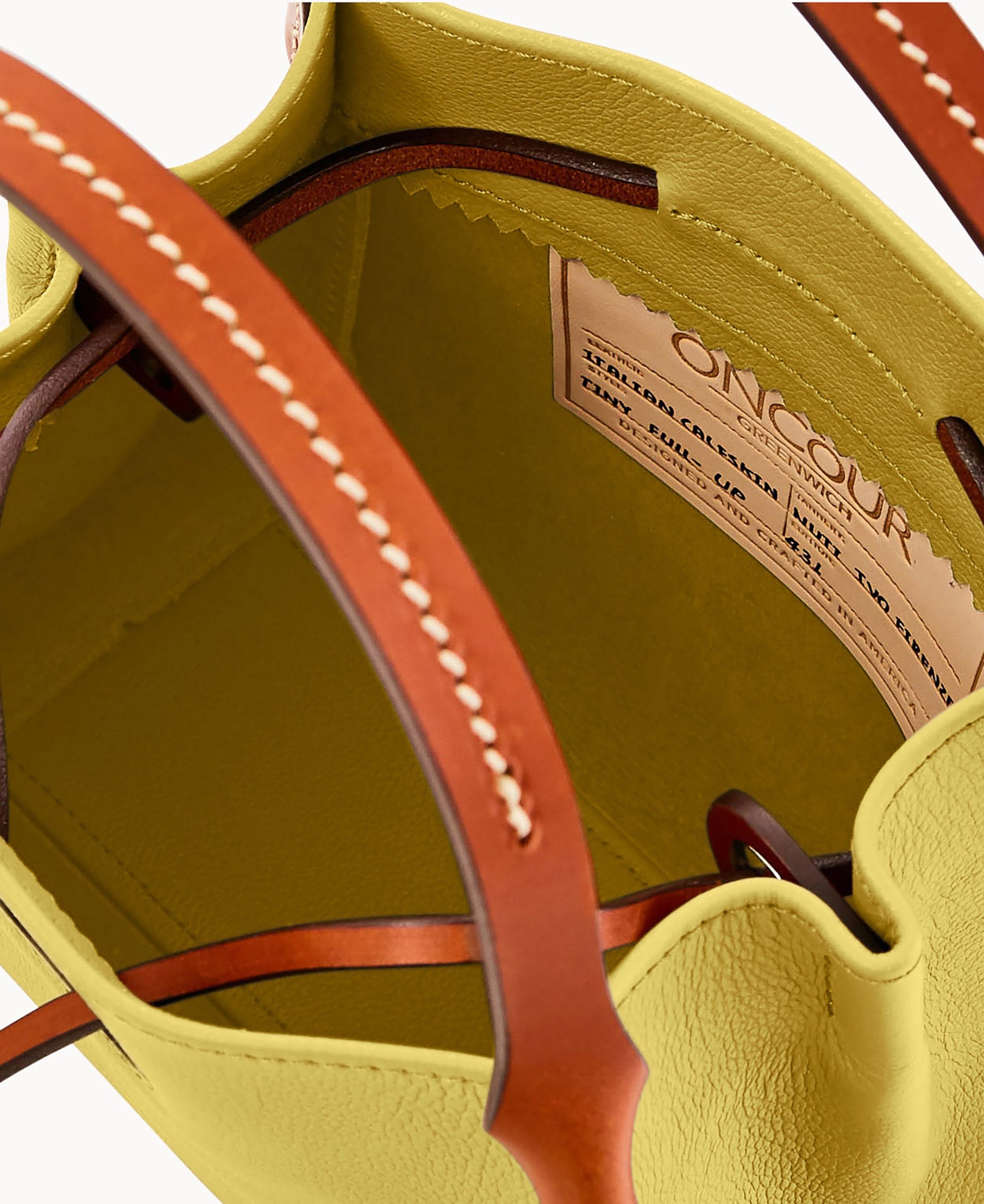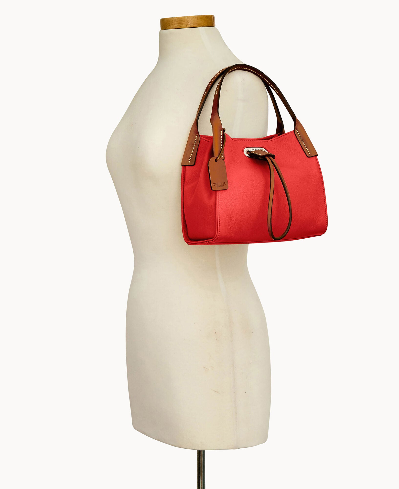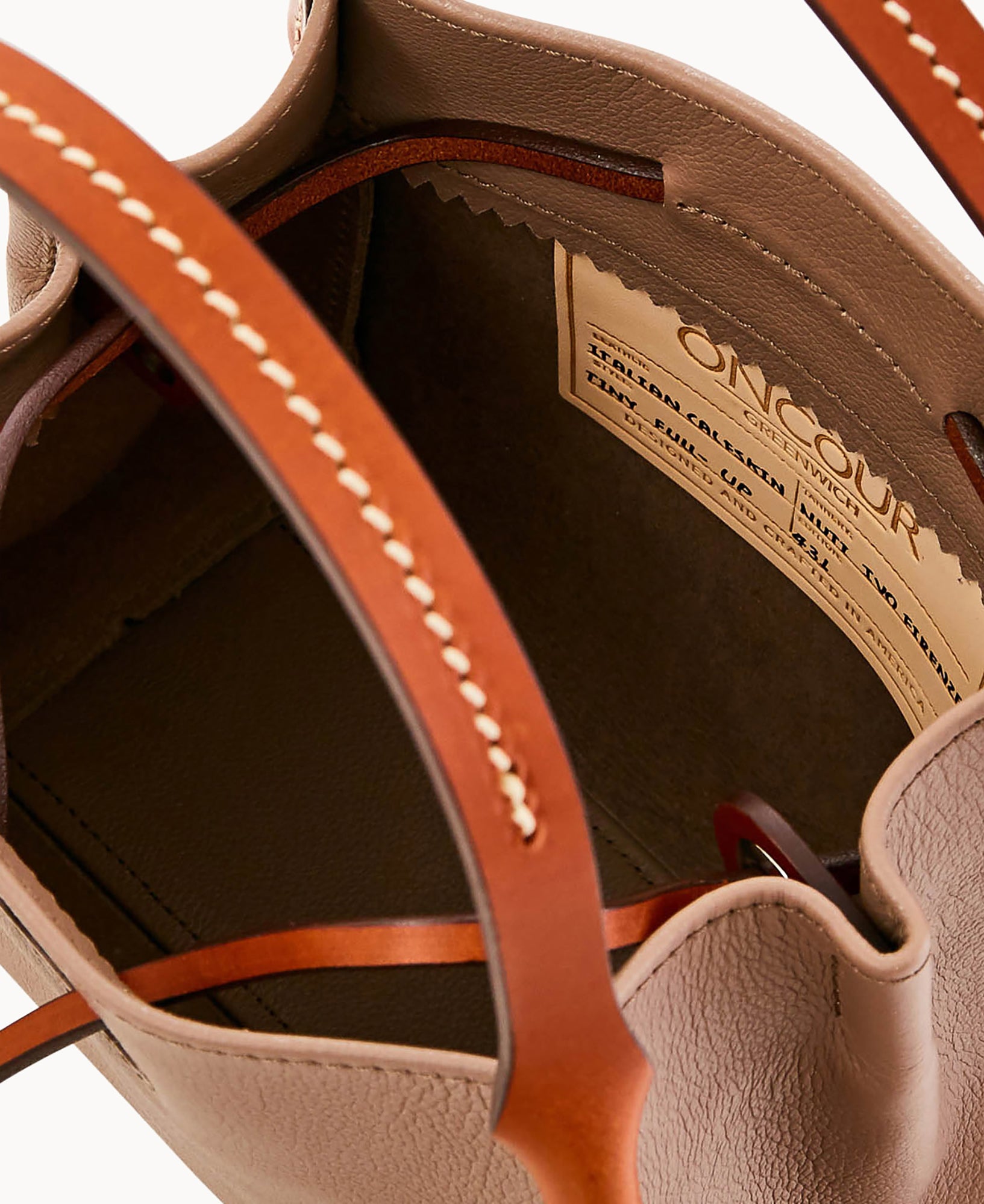 Inside key hook. Strap drop length 5″. Drawstring closure.