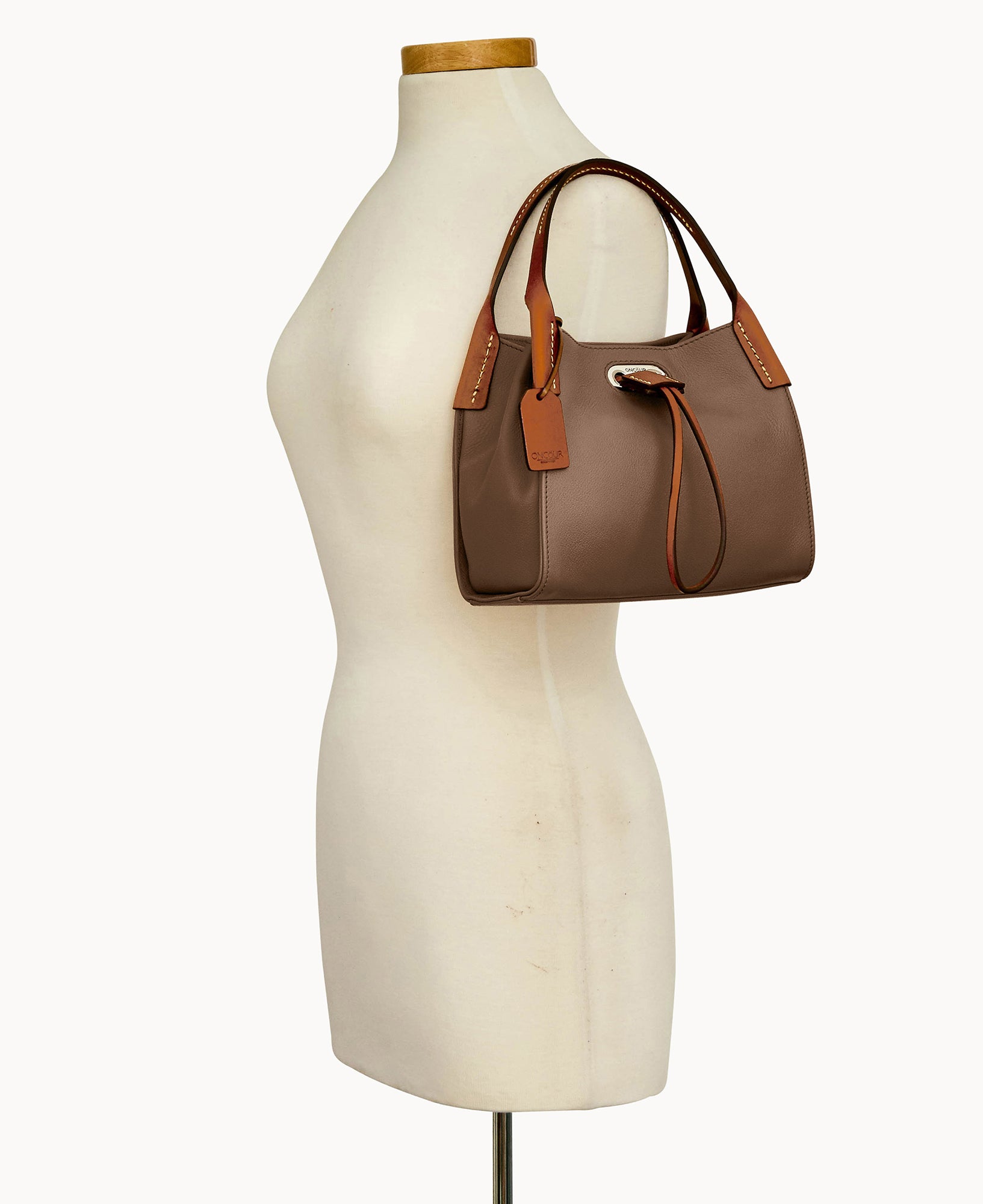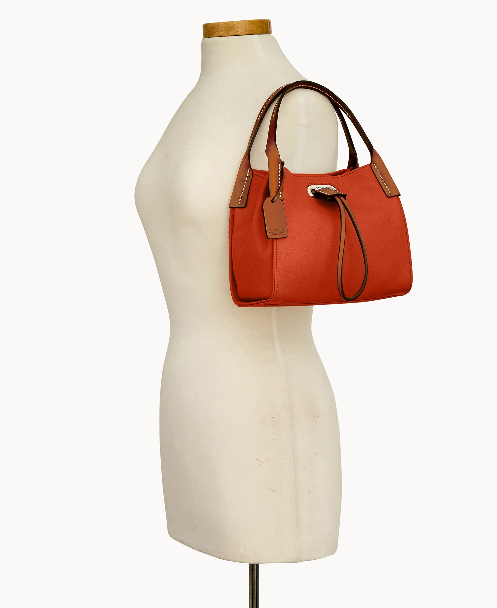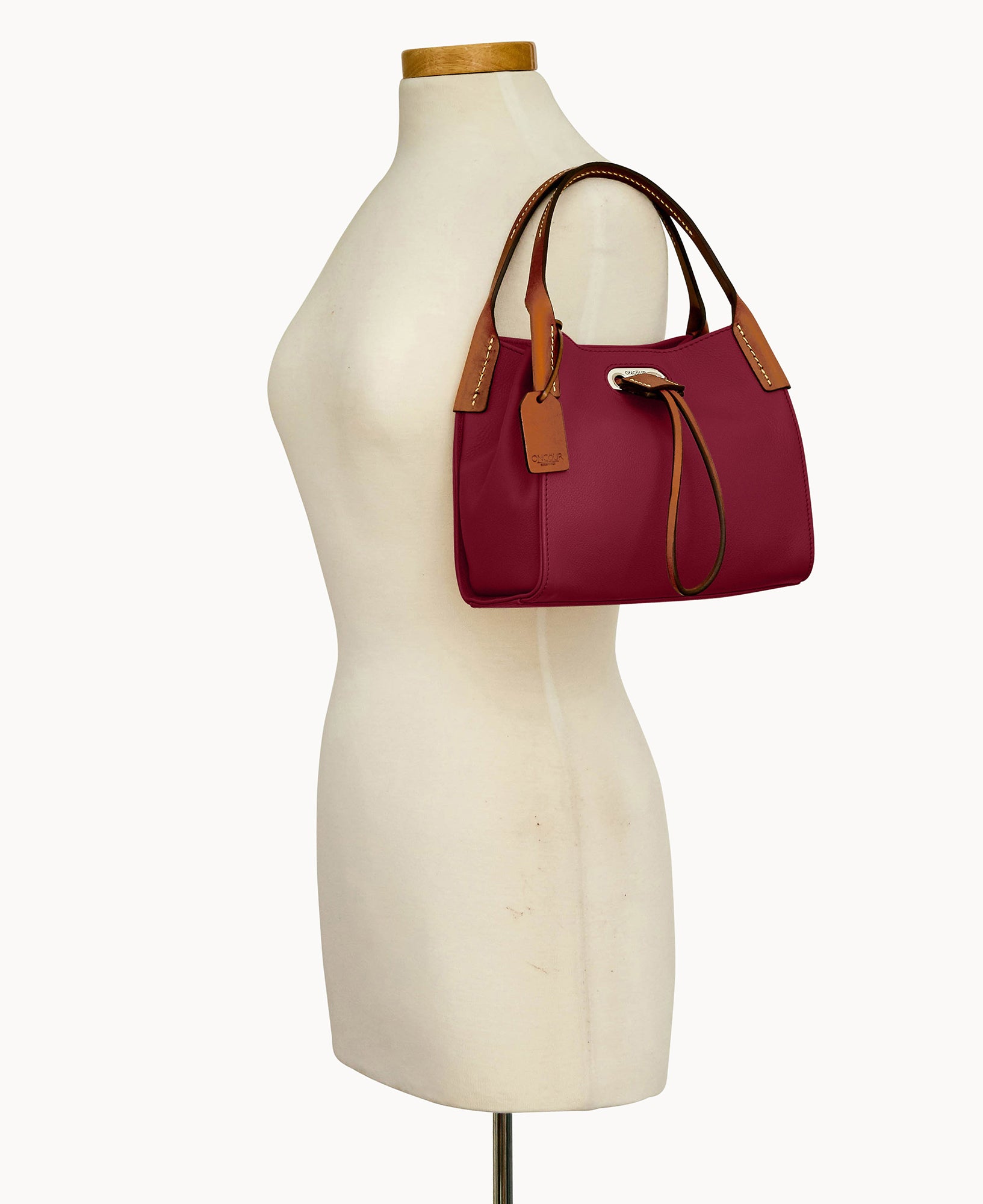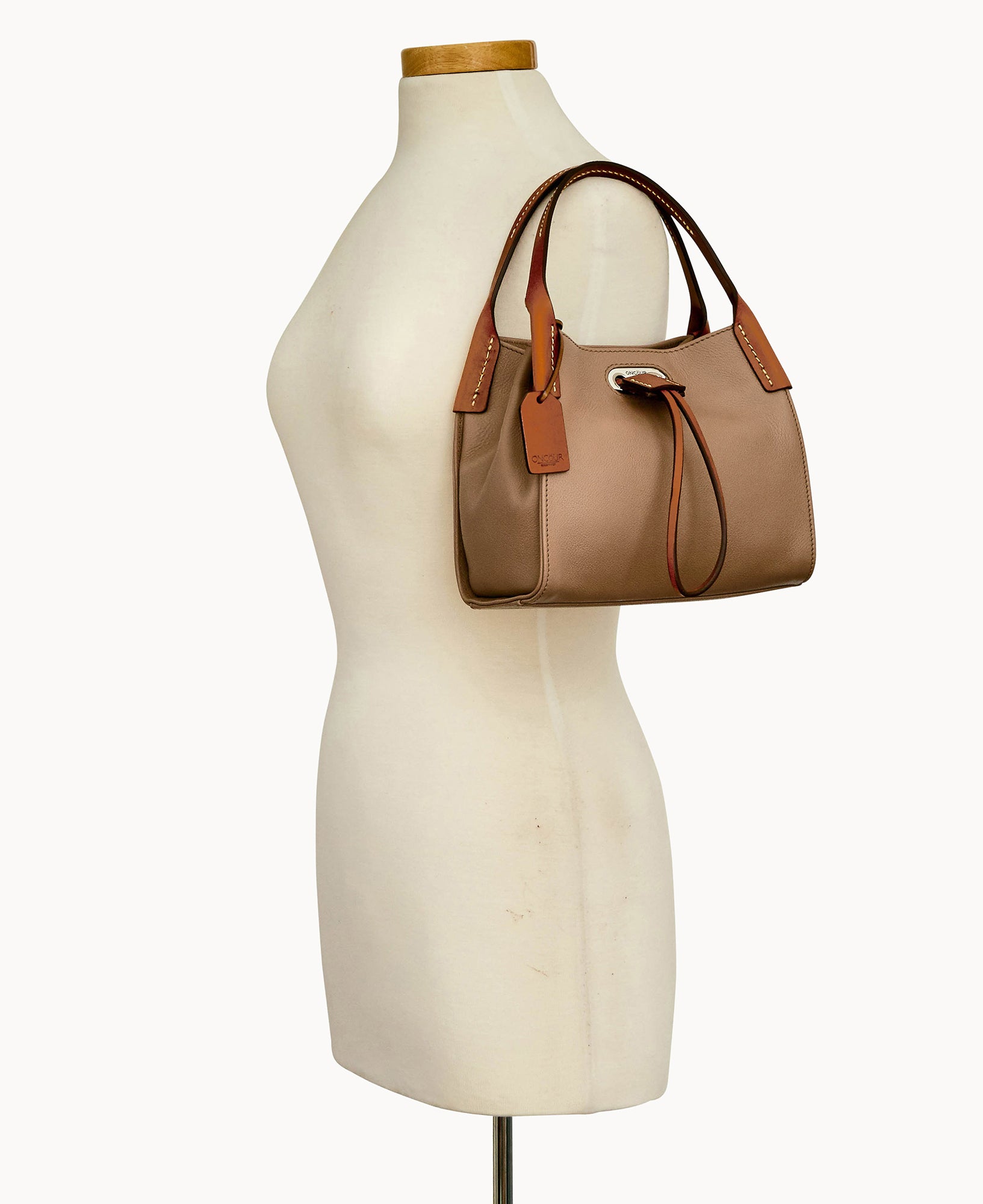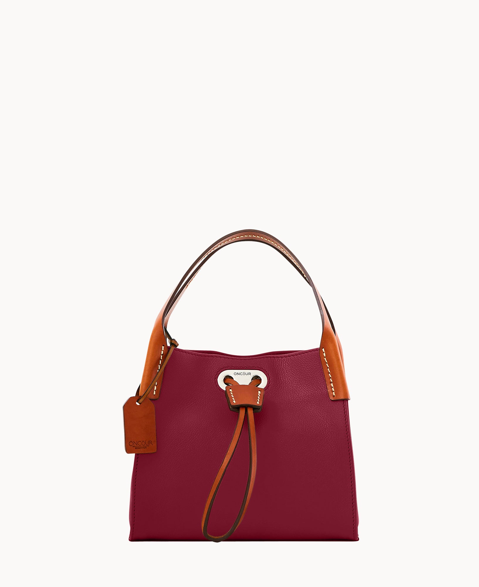 Inside key hook. Strap drop length 5″. Drawstring closure.