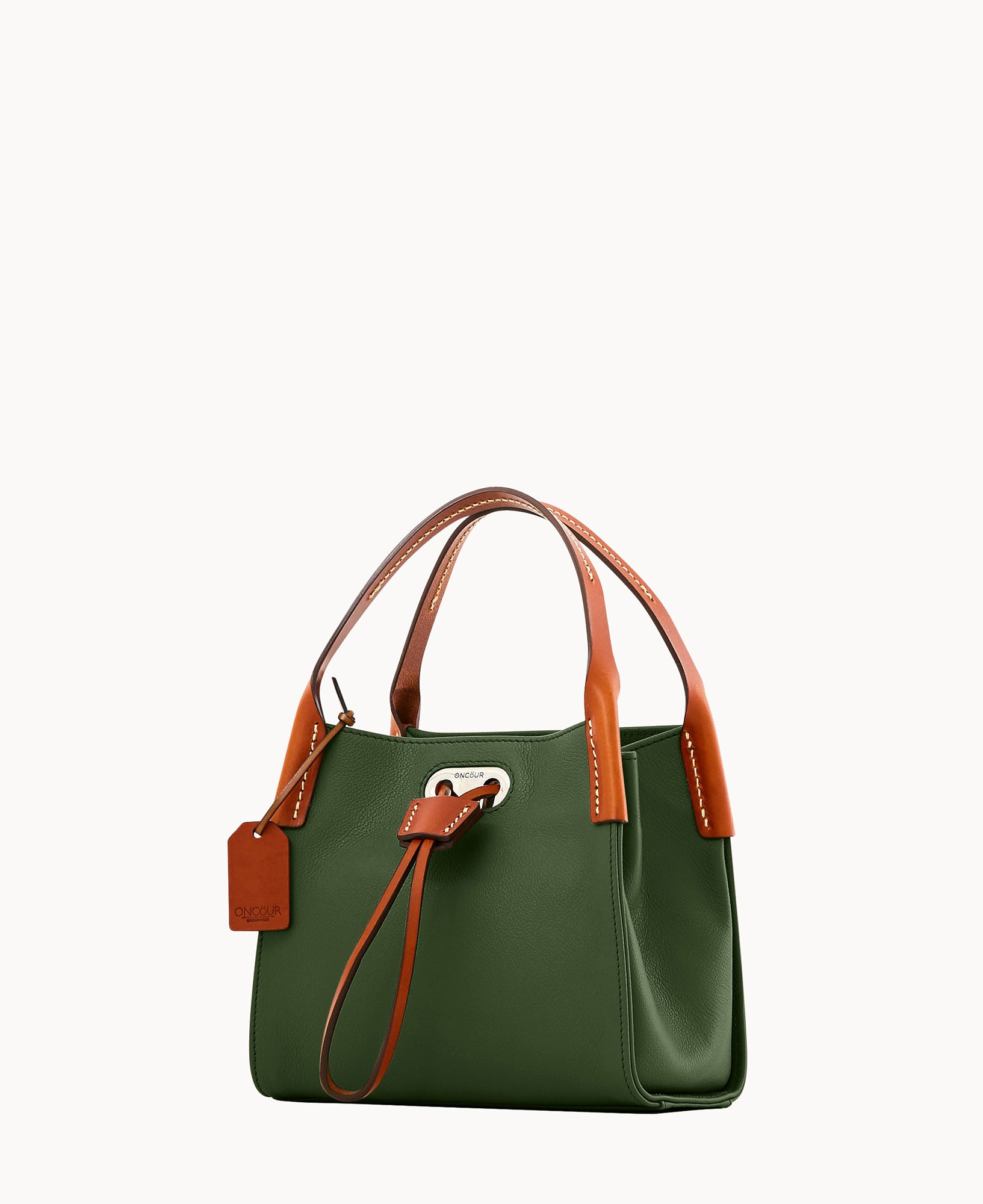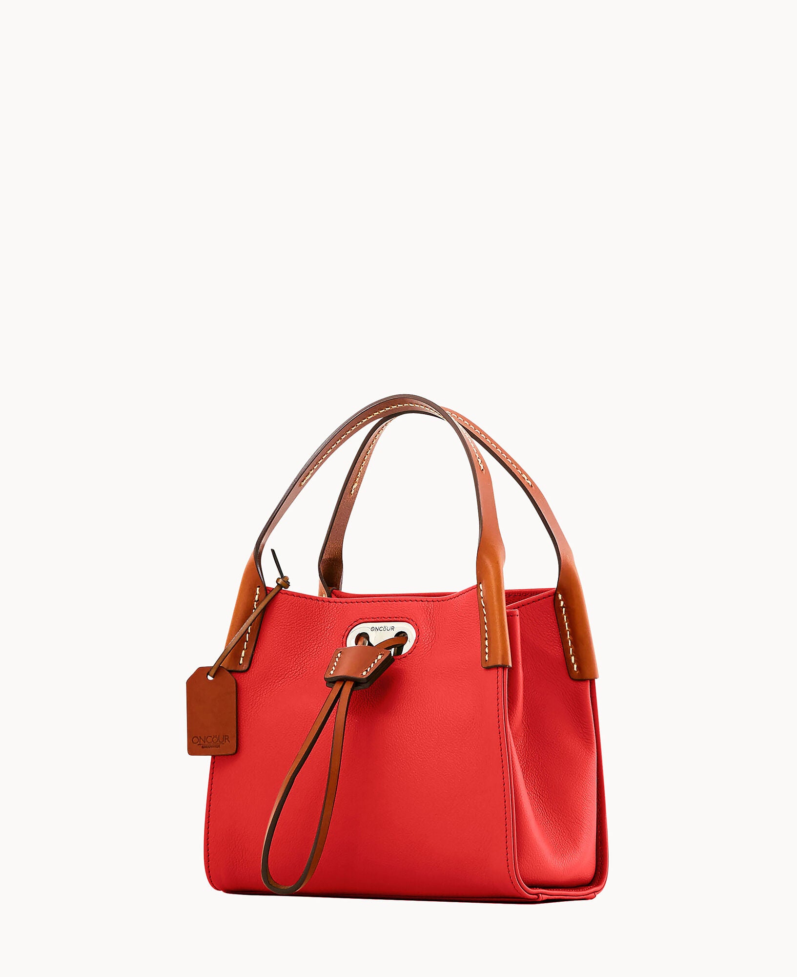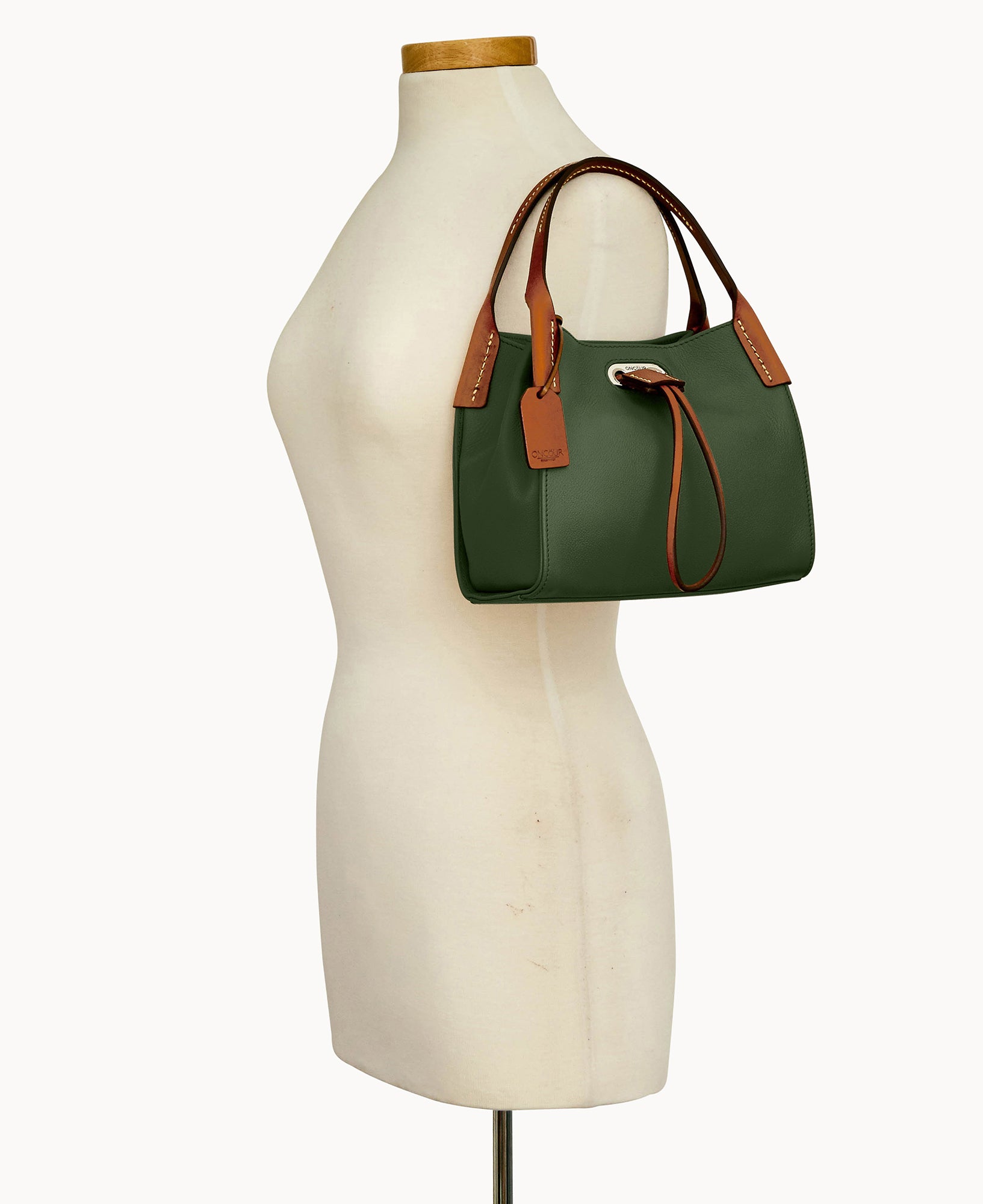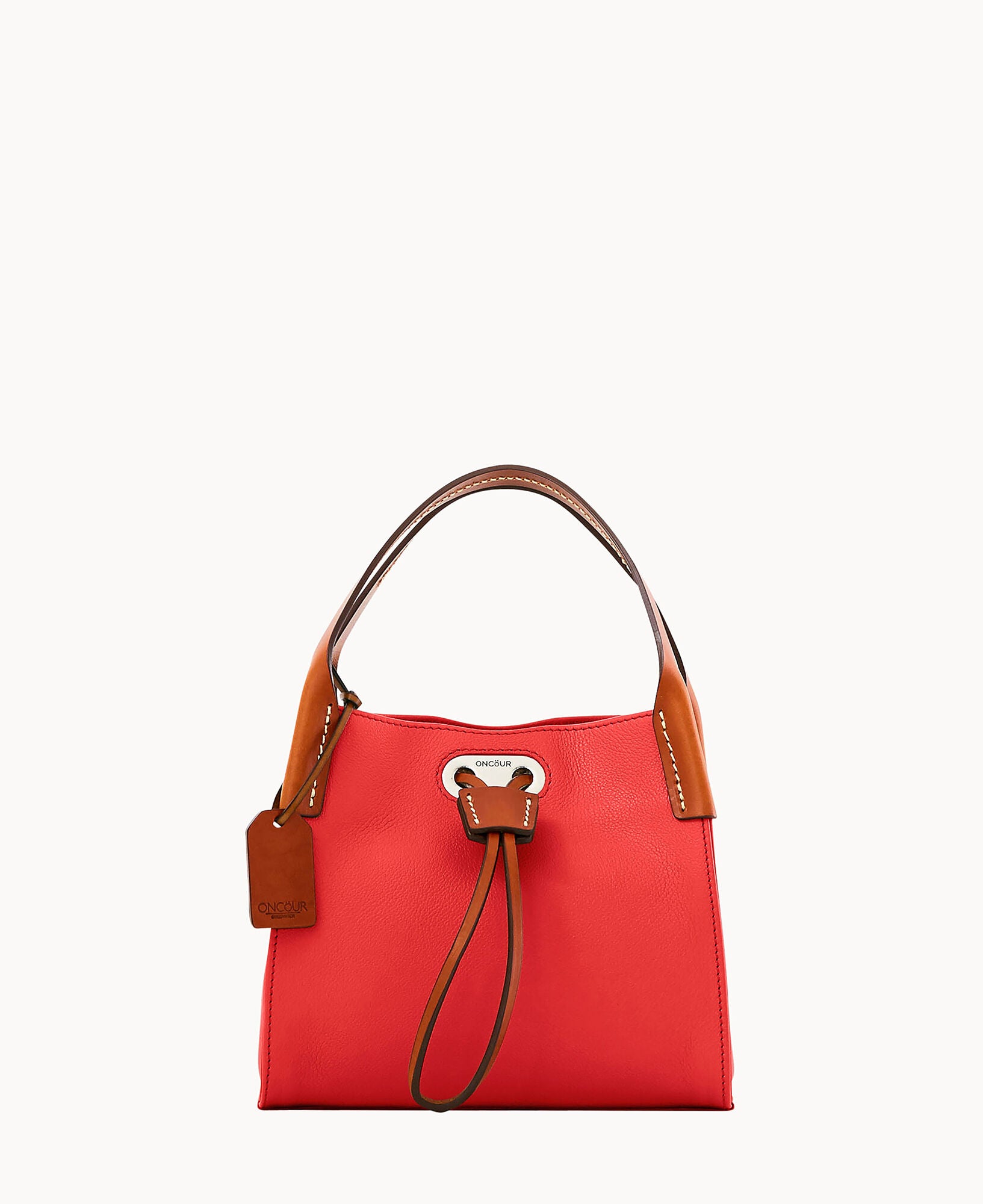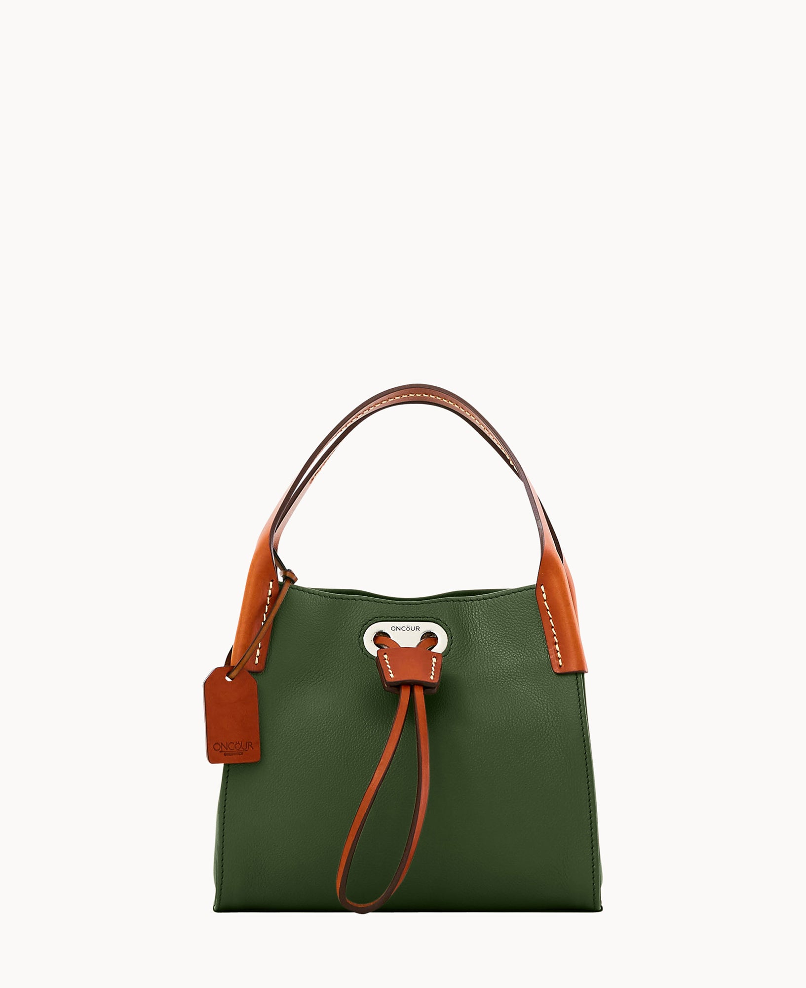 Inside key hook. Strap drop length 5″. Drawstring closure.