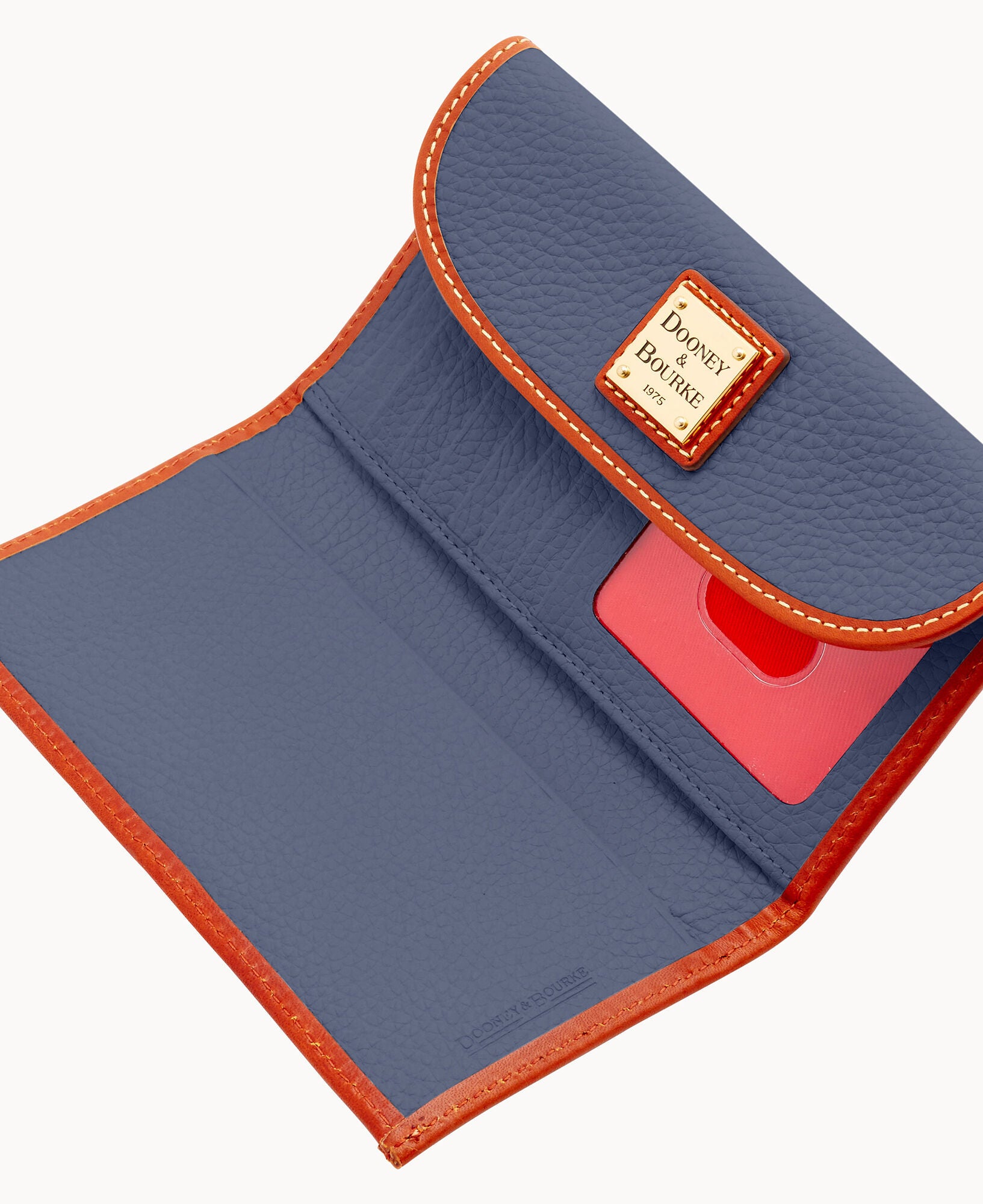 One outside zip pocket. One inside pocket. License pocket with window. Two bill compartments. Seven credit card slots. Lined. Feet. Snap closure.