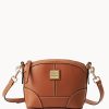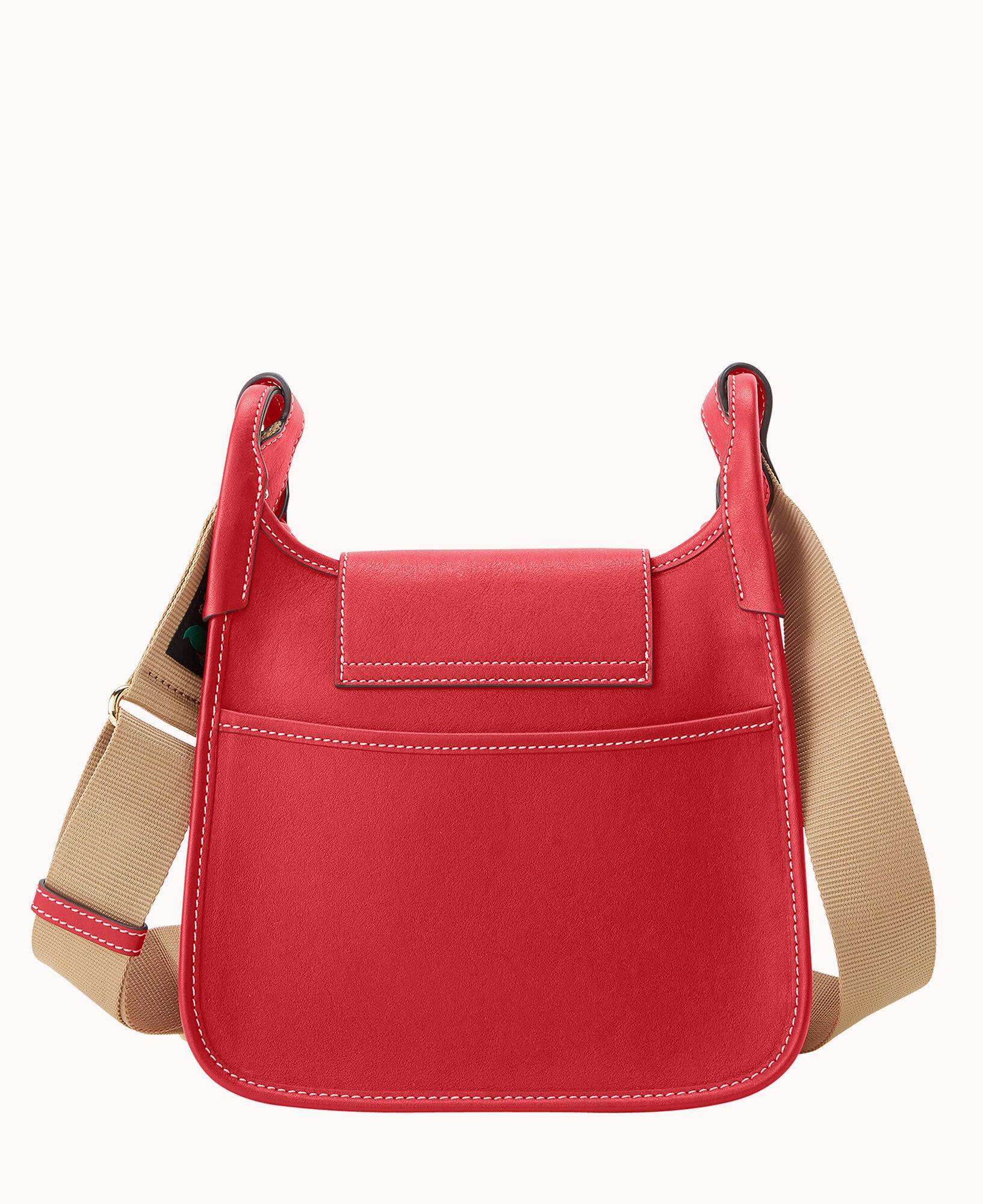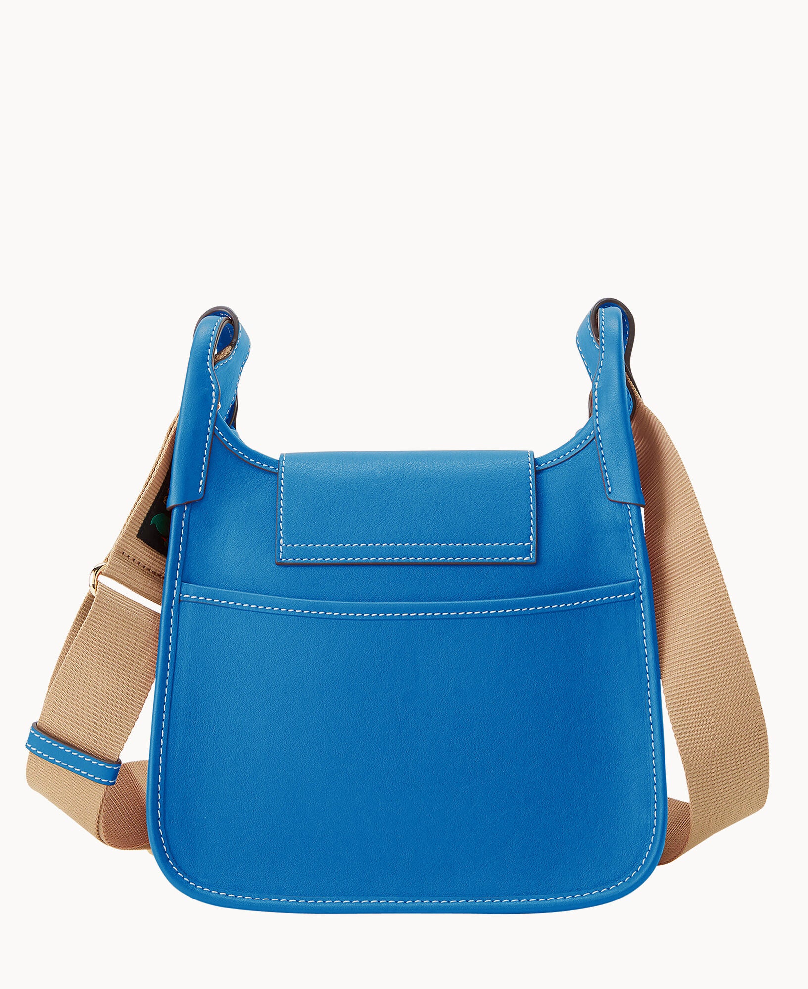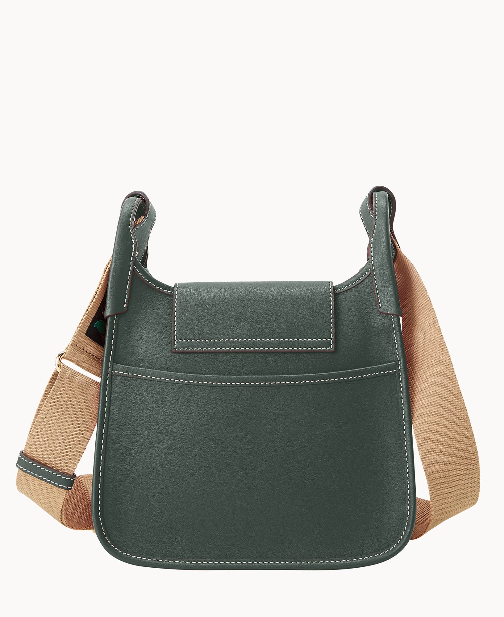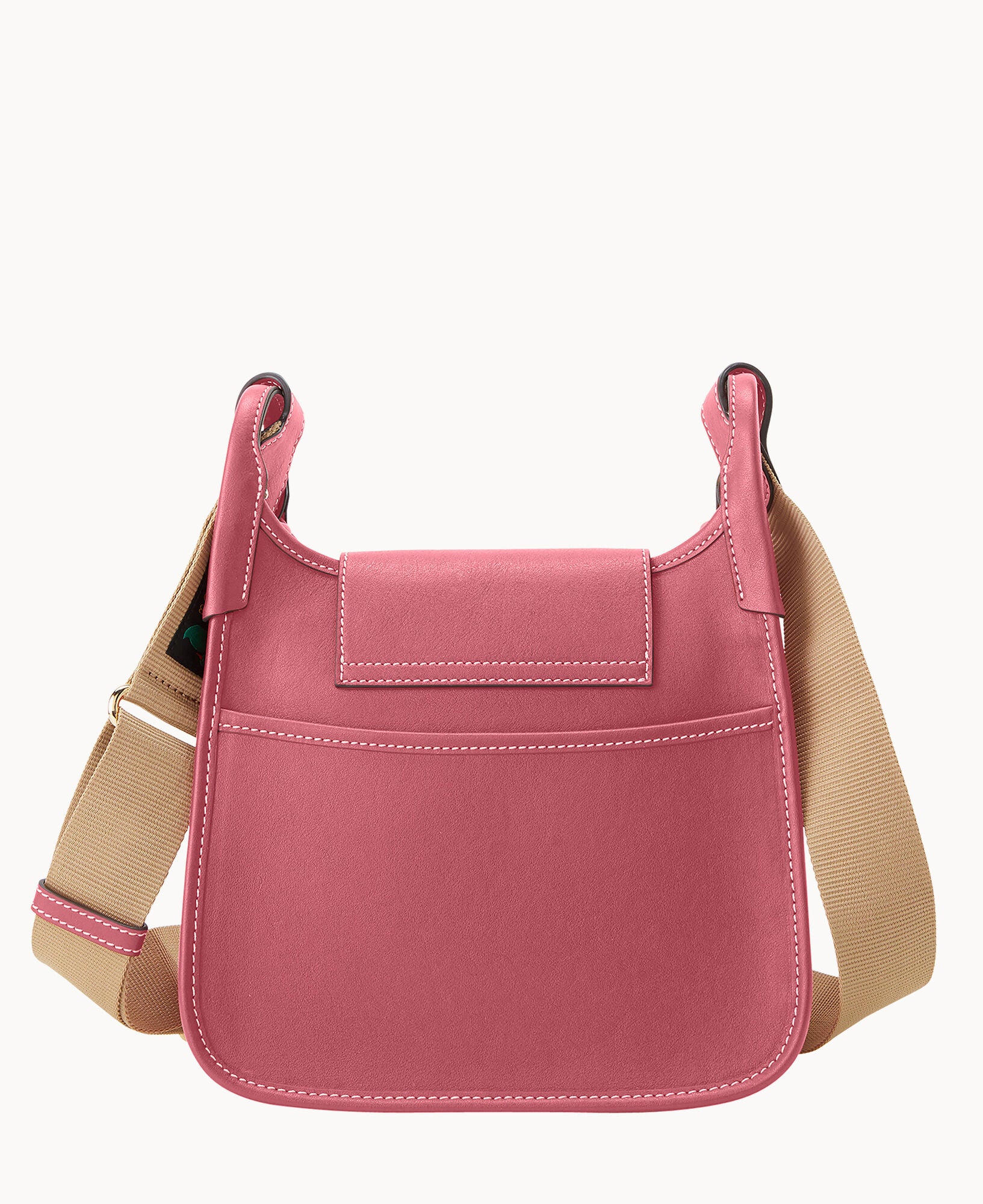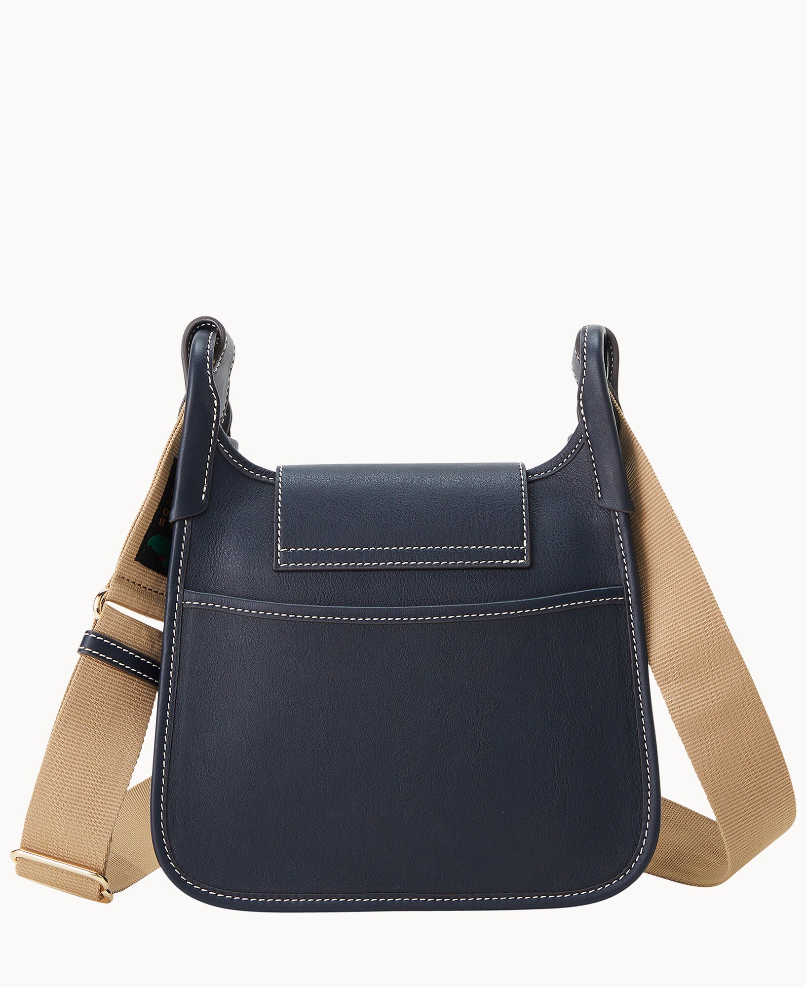 One outside pocket. Two inside card slots. Inside key hook. Adjustable shoulder strap. Strap drop length 23″. Lined. Turnlock closure.