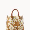 One inside zip pocket. Two inside pockets. Cell phone pocket. Inside key hook. Handle drop length 4″. Adjustable, detachable shoulder strap. Strap drop length 15.5″. Lined. Feet. Zipper closure.