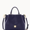 Outside zip pocket. One inside zip pocket. One inside pocket. Inside key hook. Adjustable, detachable shoulder strap. Strap drop length 27″. Lined. Feet. Magnetic closure.
