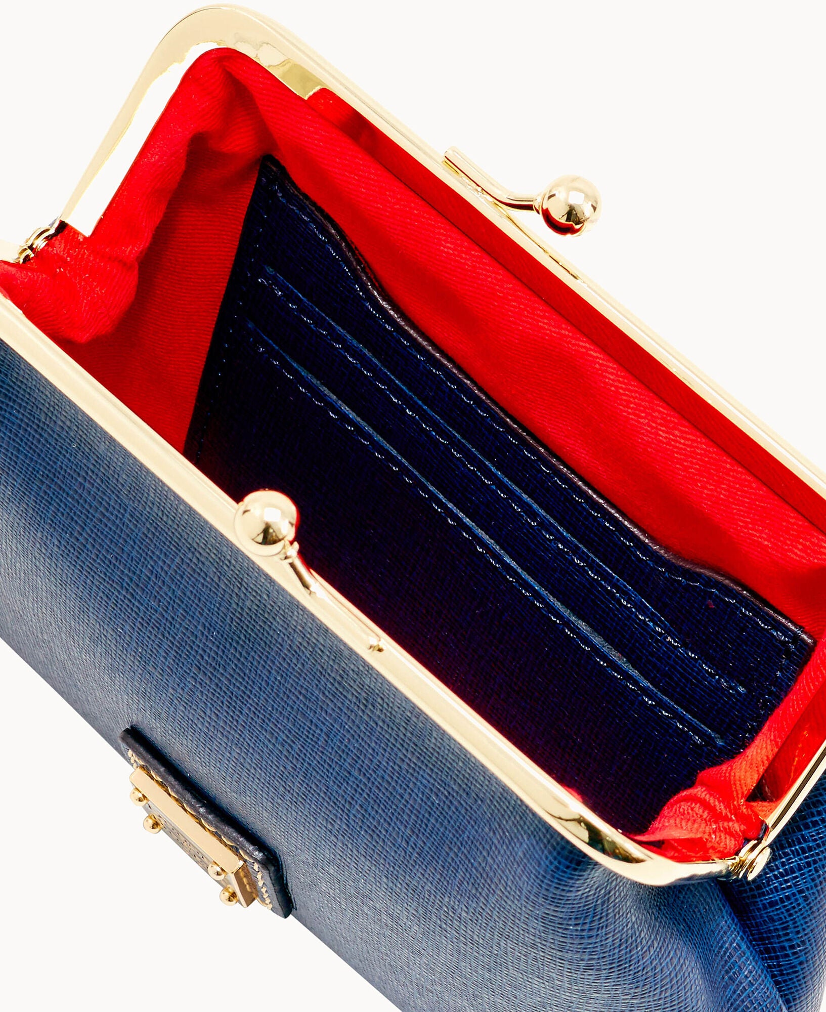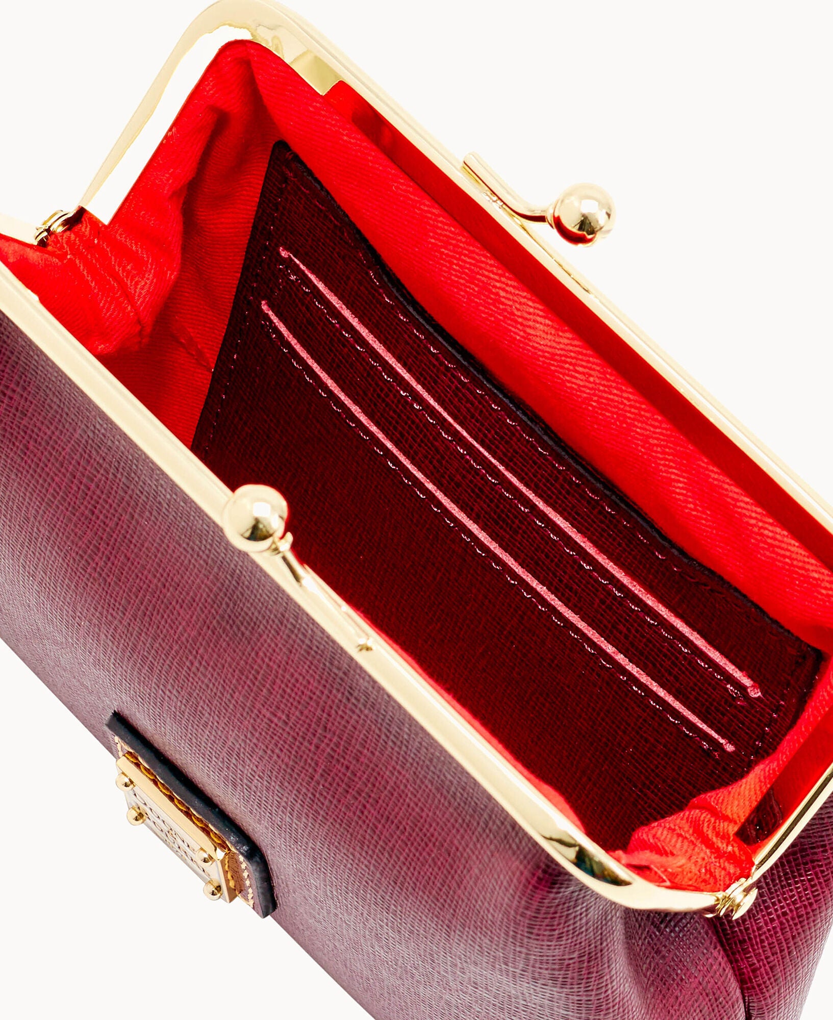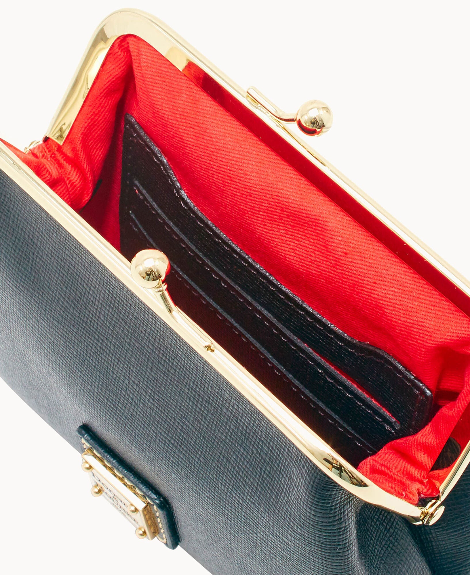 Six credit card slots. Lined. Frame closure.