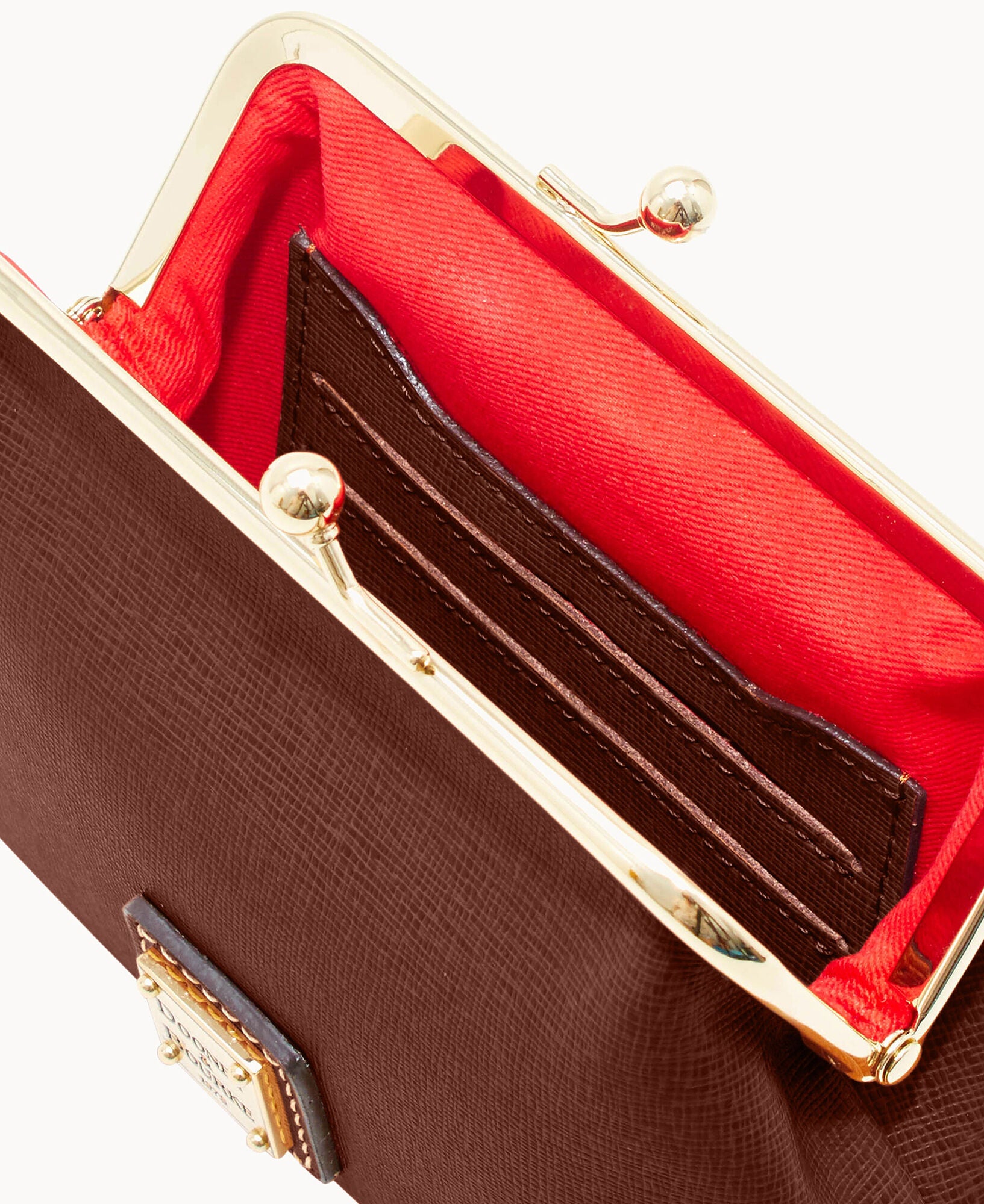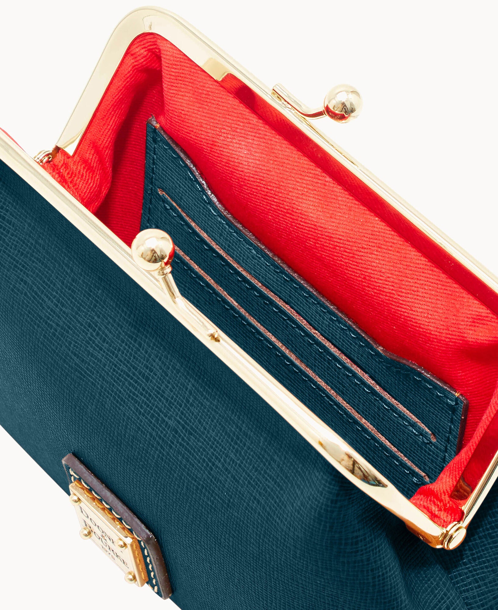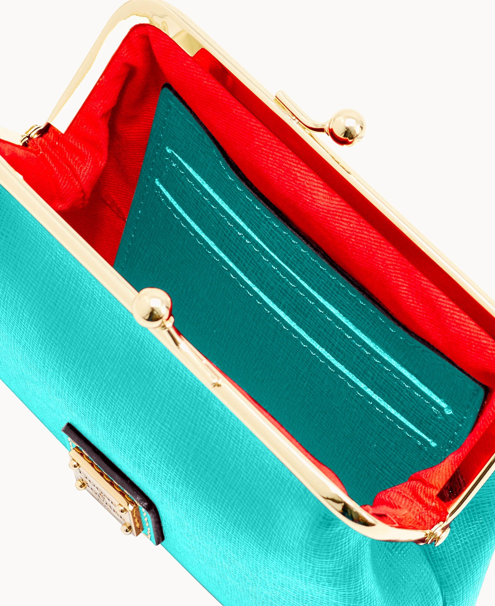 Six credit card slots. Lined. Frame closure.