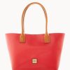 One outside zip pocket. One inside zip pocket. Two inside pockets. Inside key hook. Adjustable, detachable shoulder strap. Strap drop length 26″. Lined. Feet. Zipper closure.