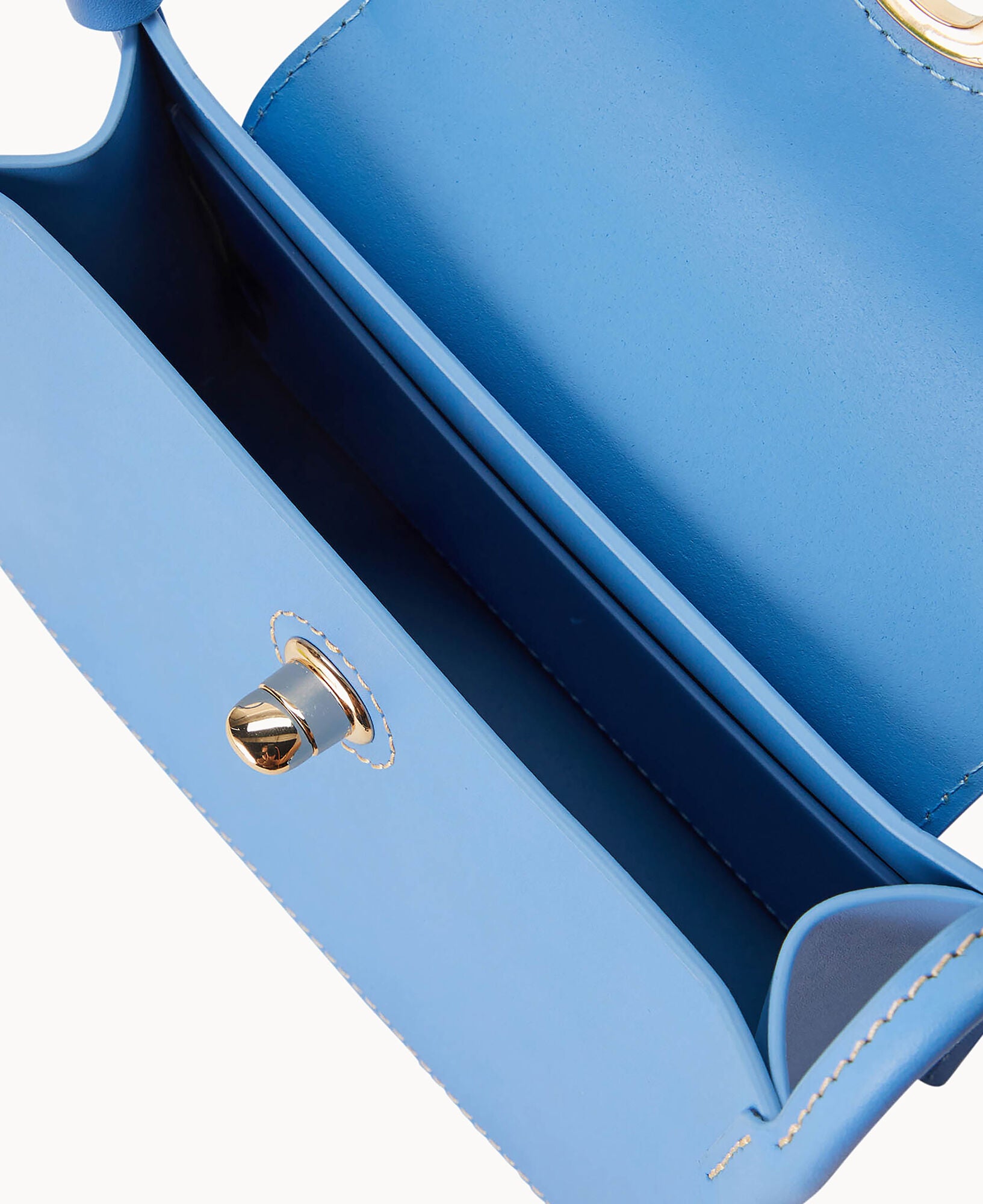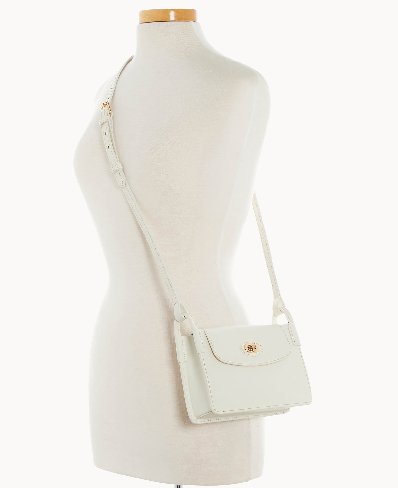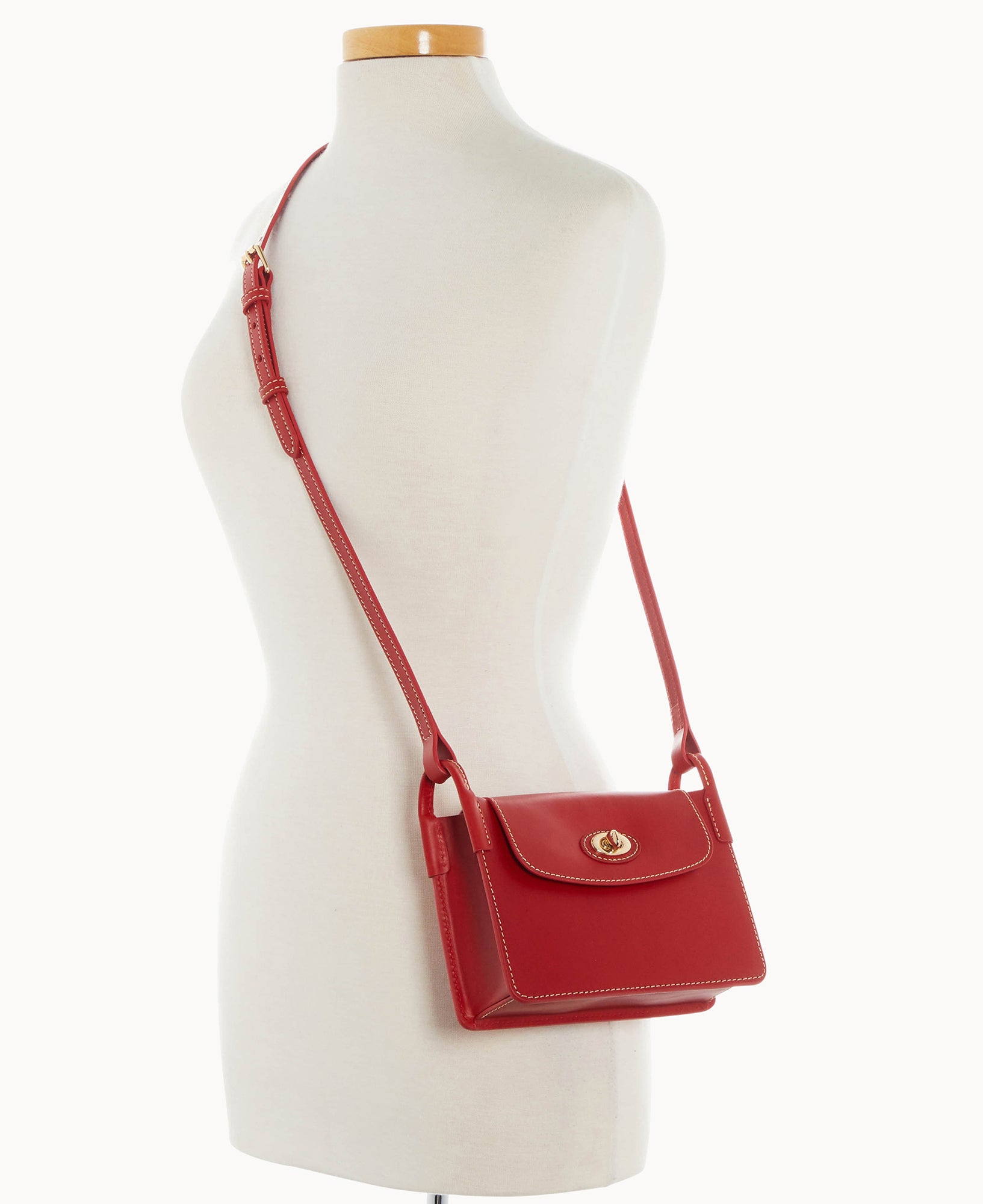 One inside pocket. Adjustable shoulder strap. Strap drop length 23″. Turnlock closure.