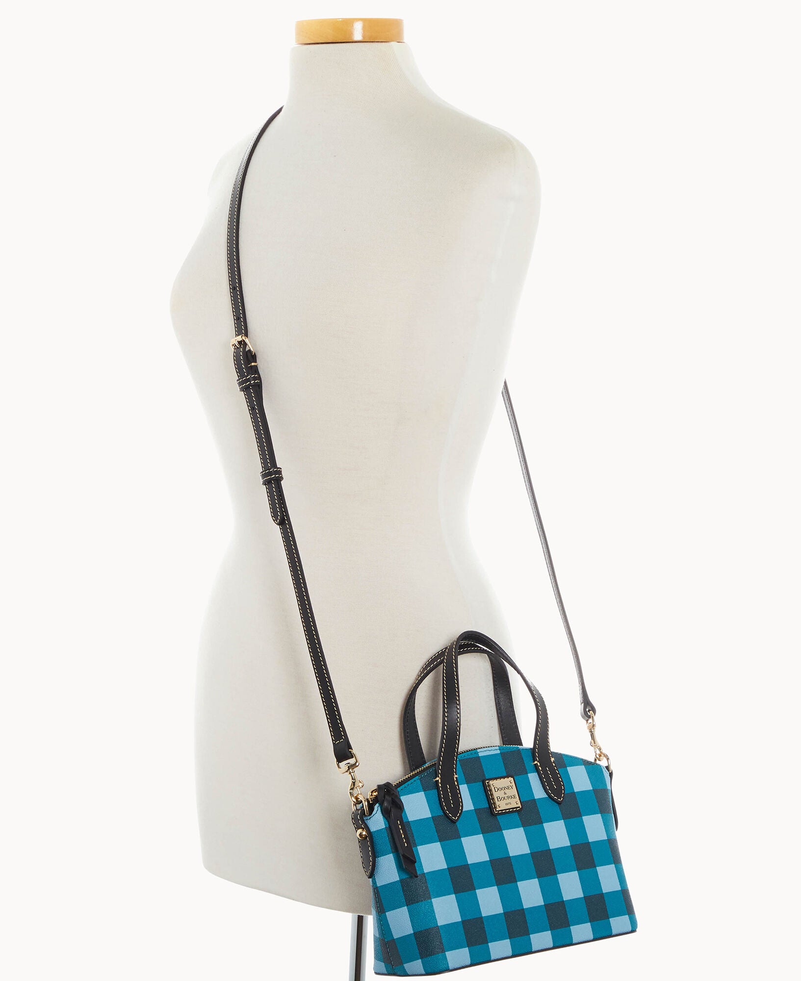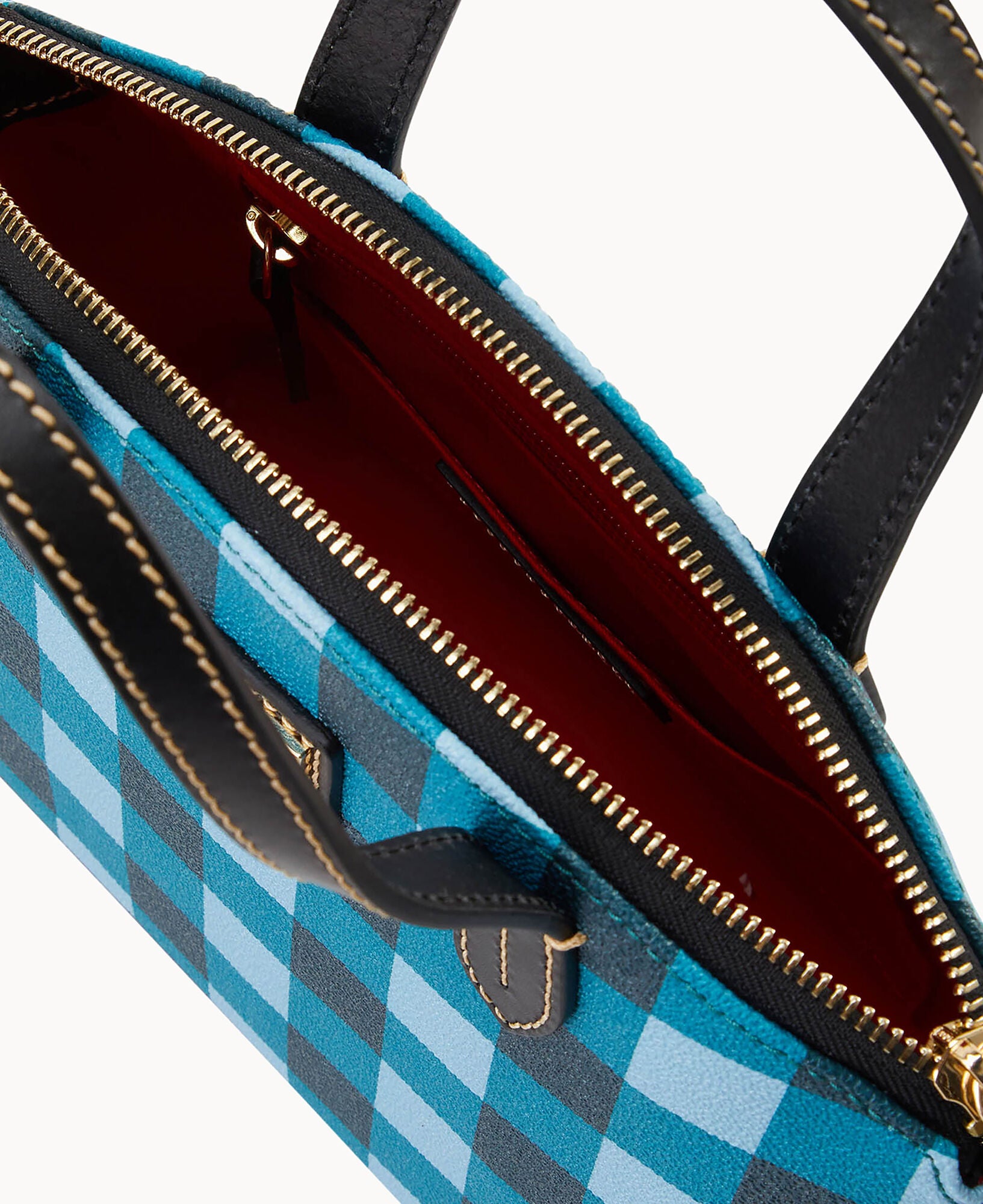 One inside zip pocket. Two inside pockets. Cell phone pocket. Handle drop length 3.5″. Strap drop length 25″. Lined. Zipper closure.
